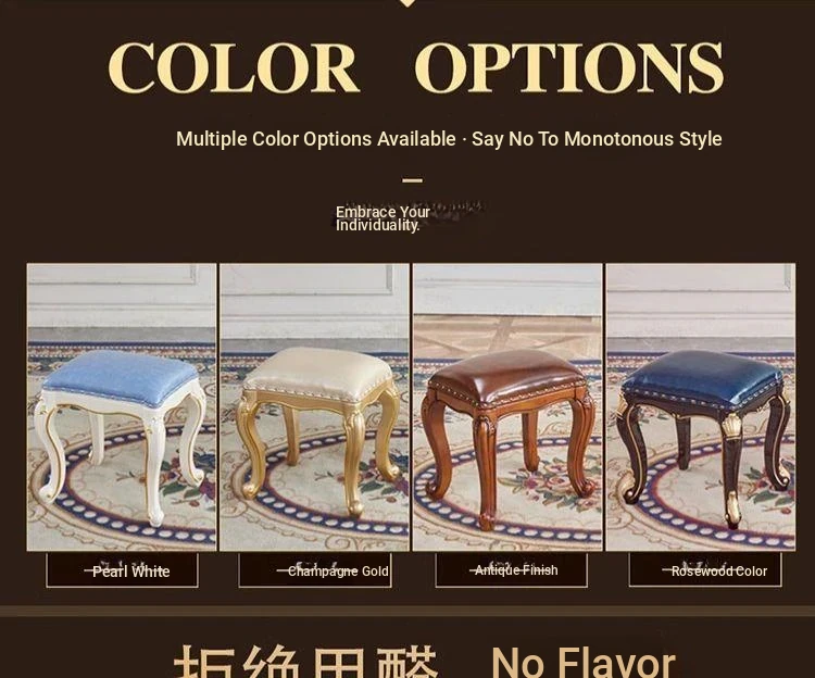 European Style Solid Wood Guzheng Stool - Versatile Low Bench for Sofa, Dressing Table, Coffee Table, and Home Use. Perfect for American-Style Makeup and Entryway Shoe Changes.