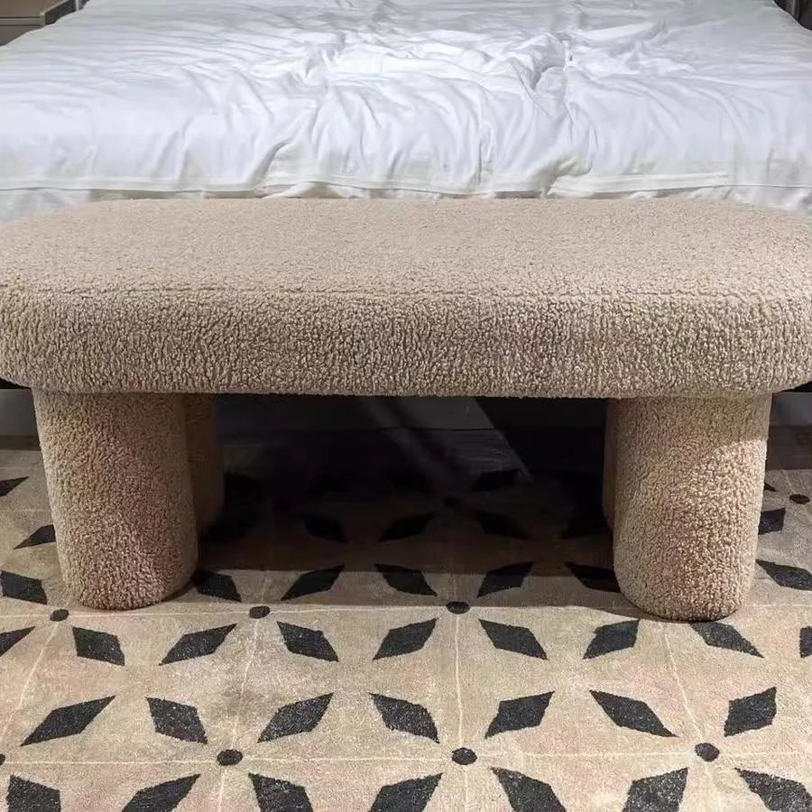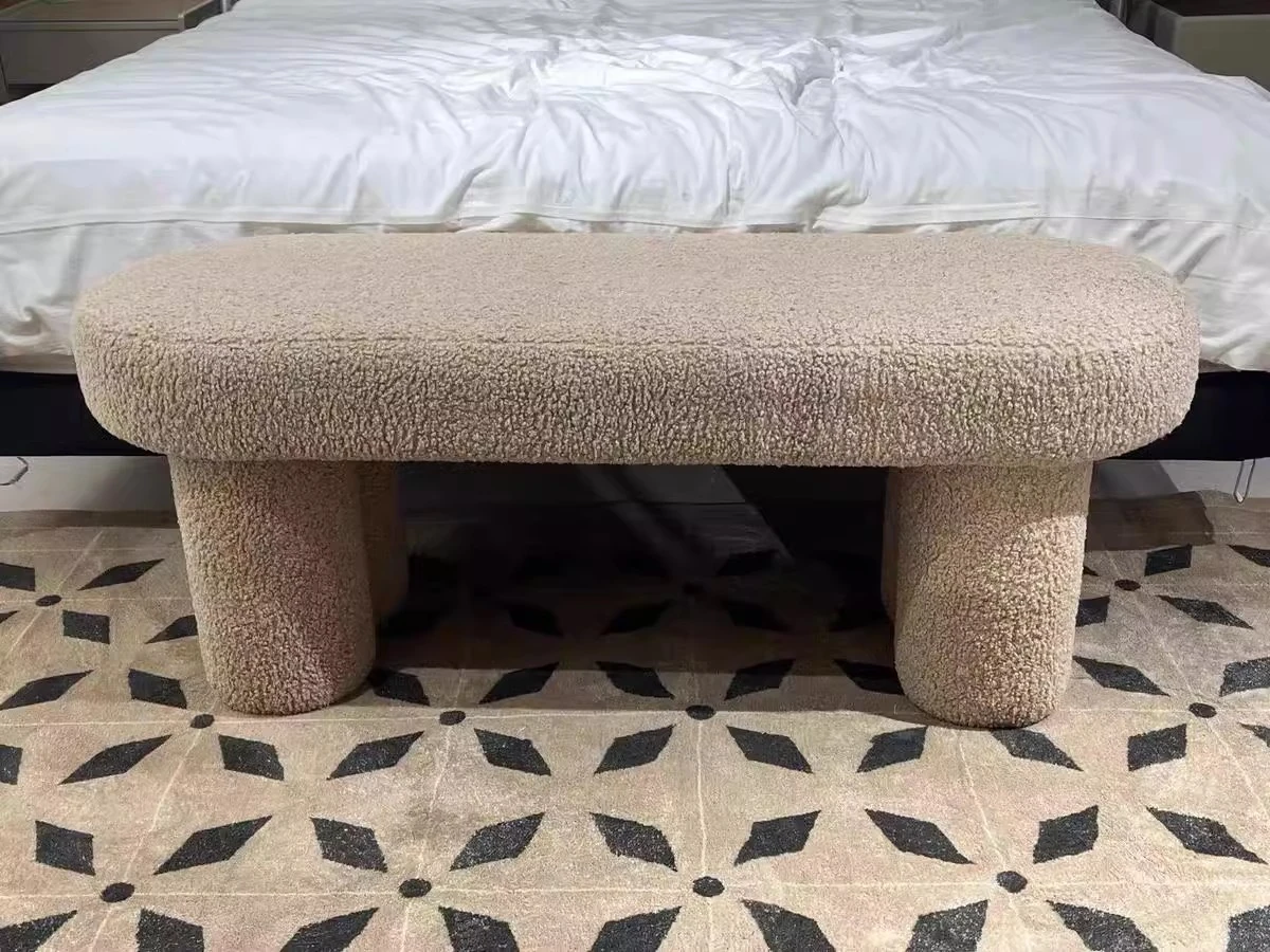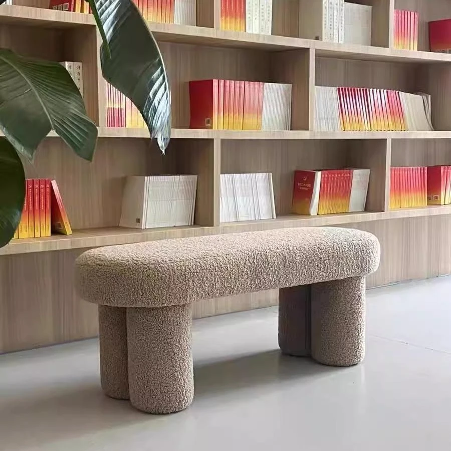 Nordic Fabric Shoe Changing Stool - Minimalist Modern Living Room Sofa Bench, Lambswool Bed End Bench for Bedroom, Long Bench for Dressing Room