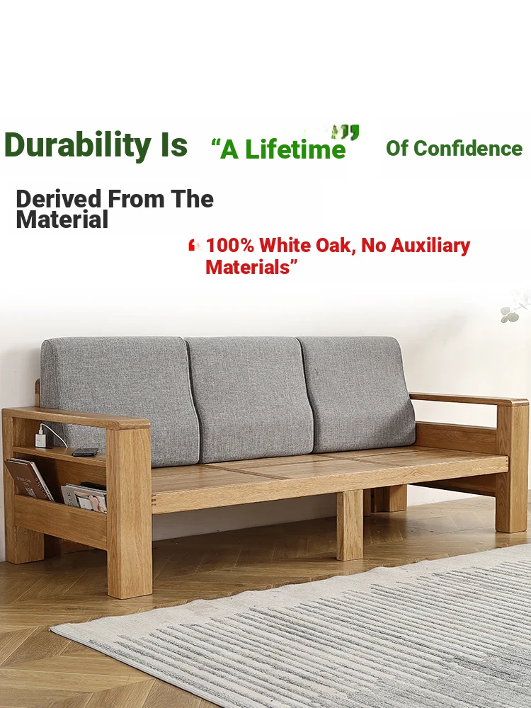 Solid White Oak Convertible Sofa for Small Spaces - New Chinese Style Meets Nordic Minimalism - All Natural Wood Corner Design for Modern Living Rooms