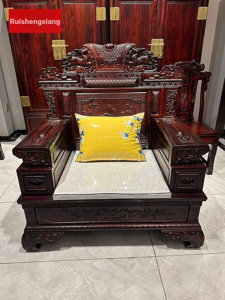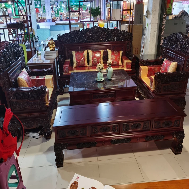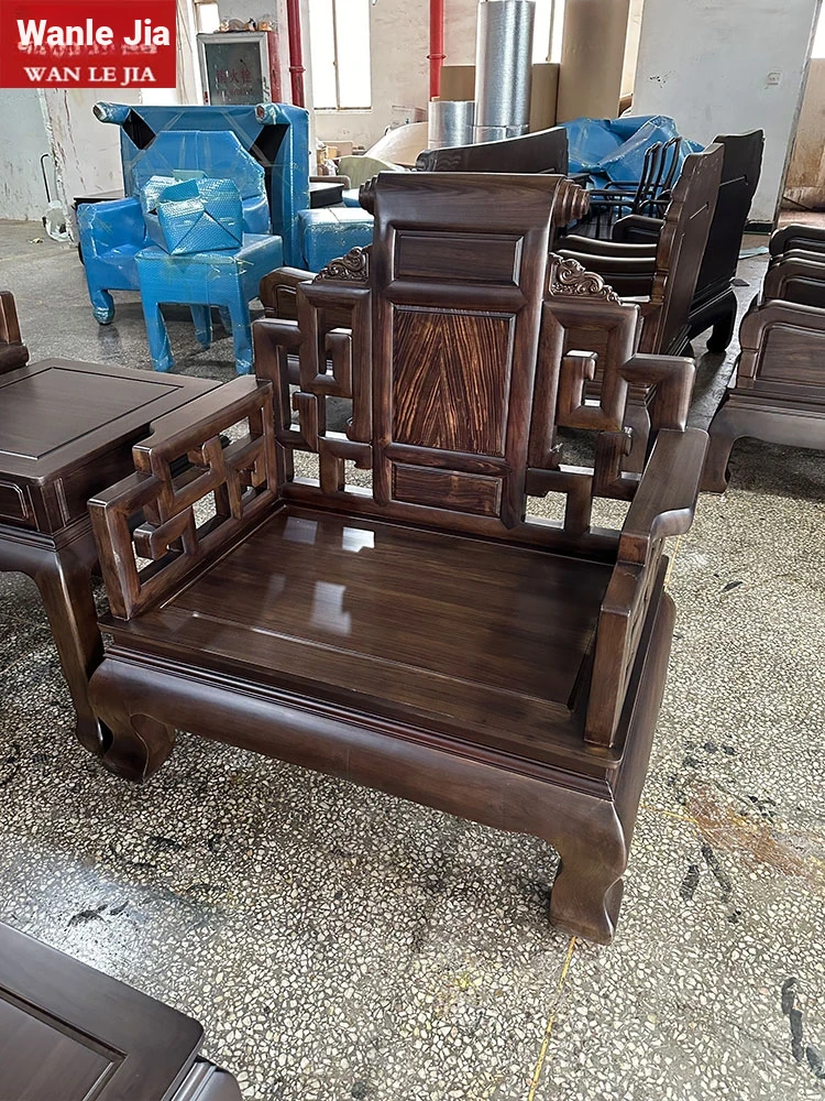 African Rosewood Indonesian Black Rosewood Sofa Set - Luxury Mahogany Furniture for Living Room, Featuring Broadleaf Padauk and Prosperity Design. Perfect for Elegant Home Décor!