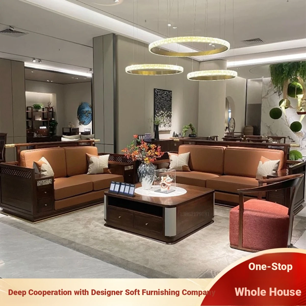 Elegant New Chinese Style North American Black Walnut Sofa - Premium Solid Wood Storage Sofa for Luxurious Living Rooms and Villas