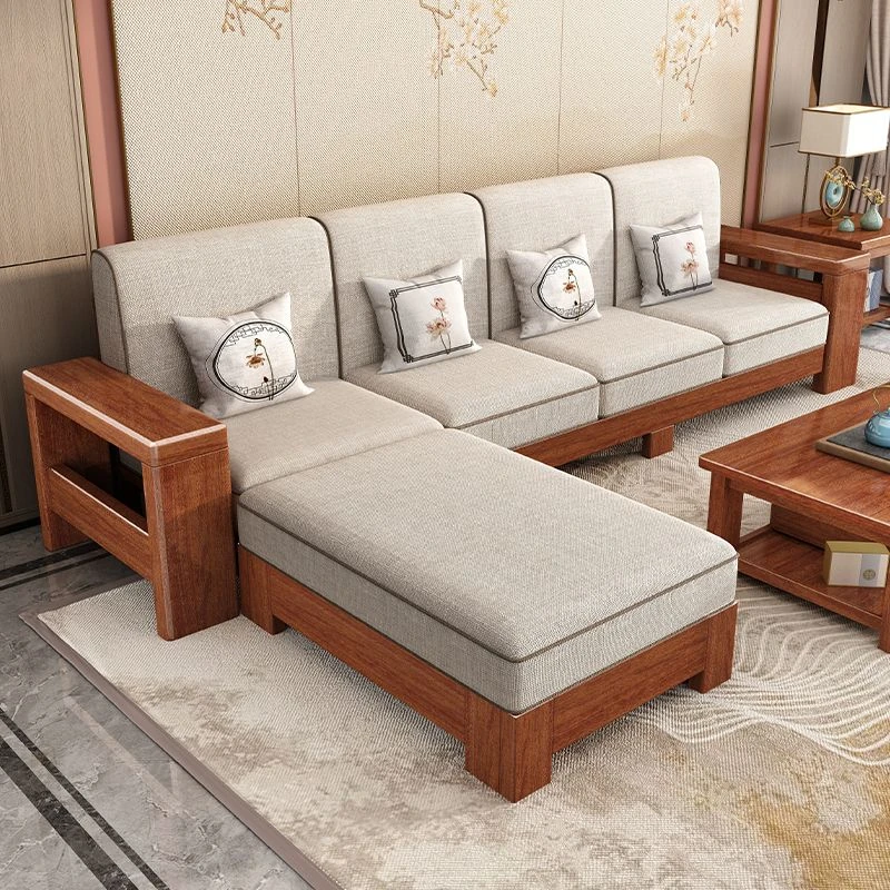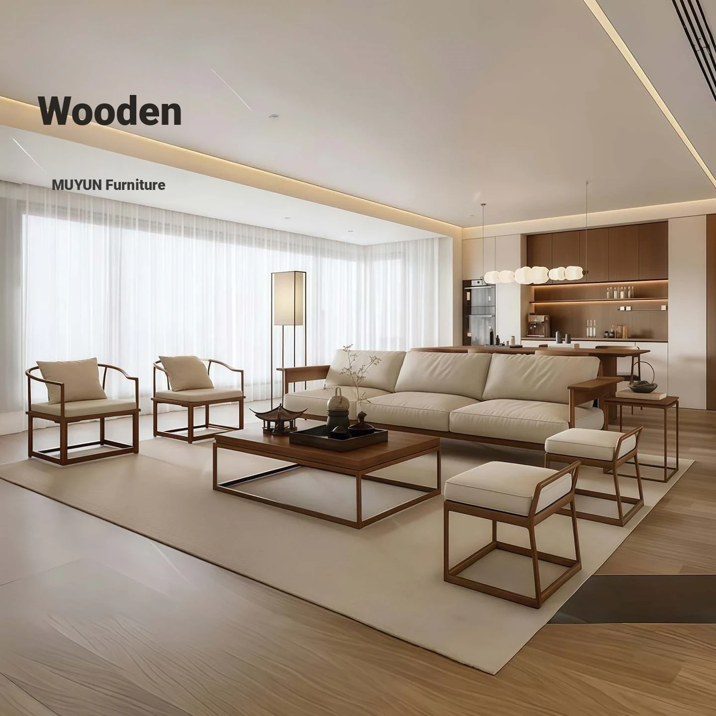 Elegant New Chinese Style Solid Wood Fabric Sofa Set - Zen-Inspired Design for Villas, High-End Clubs, and Small Apartments. Perfect for Showroom Furniture!