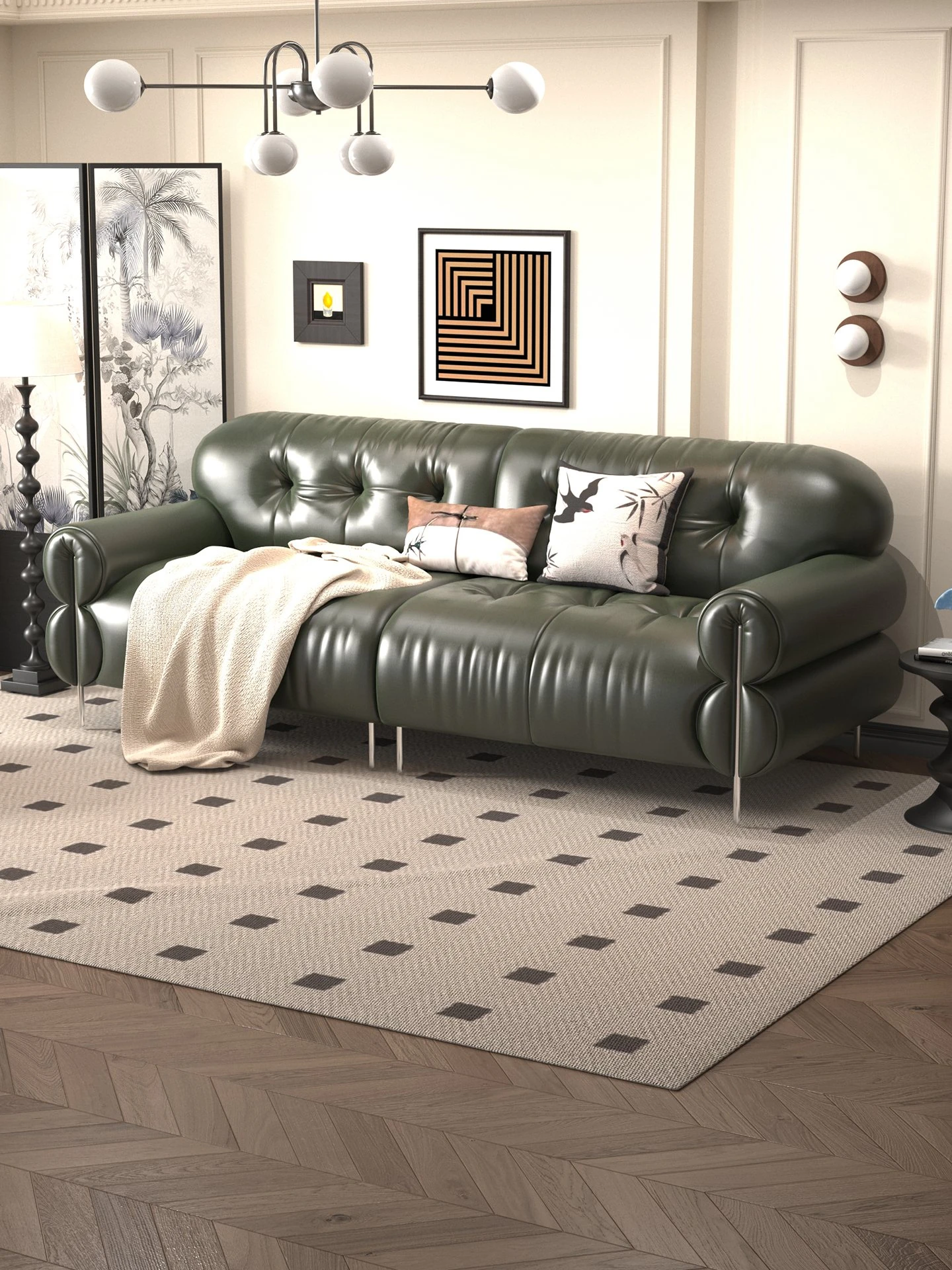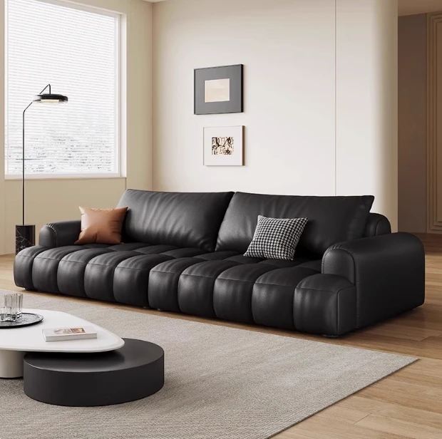2025 New Arrival: Modern Minimalist Three-Seater Sofa in Premium Leather - Luxurious Top-Grain Leather with Cotton Candy Puff Design for Your Living Room