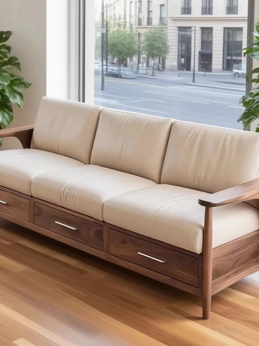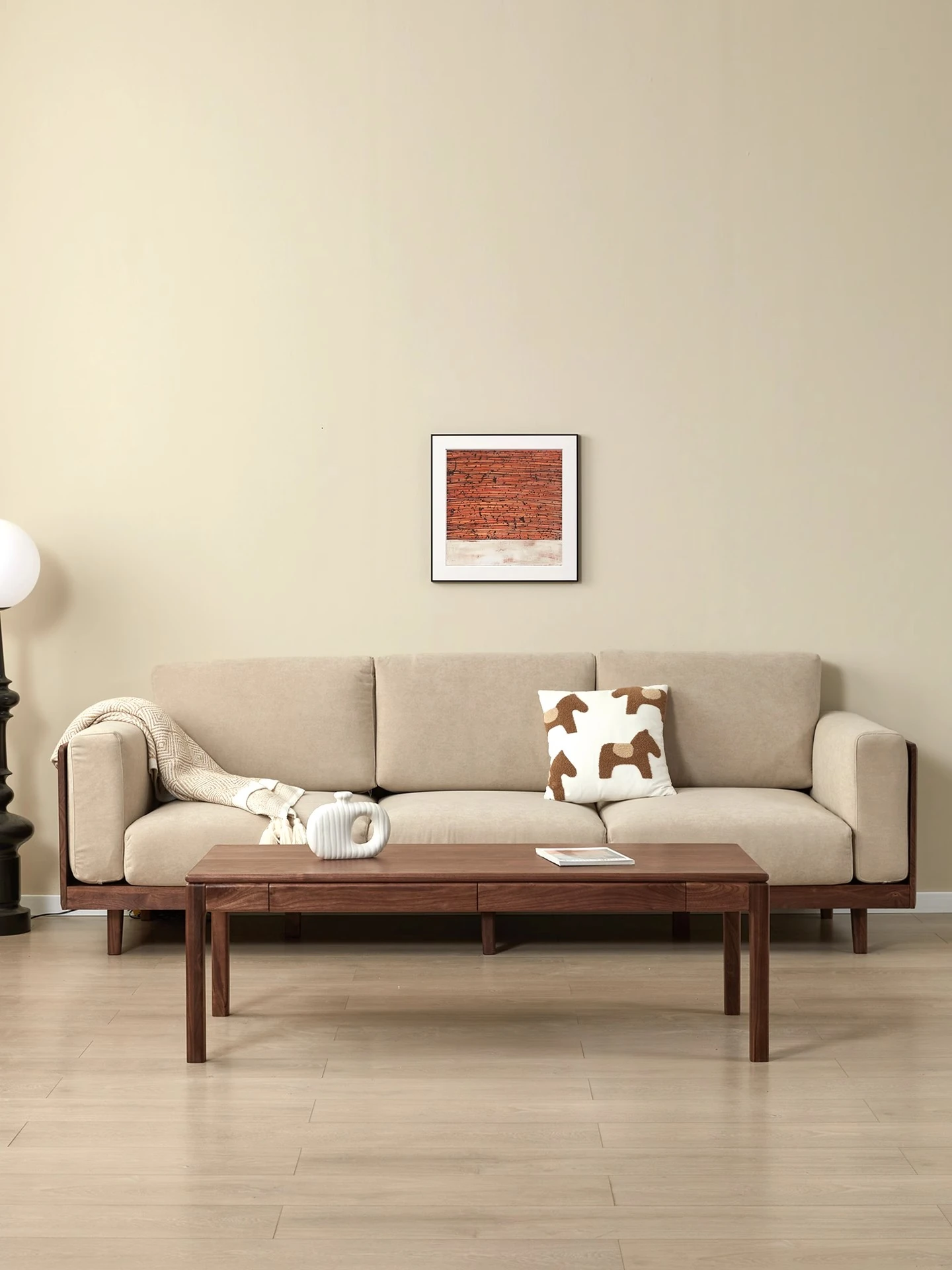 Modern Nordic Solid Walnut Sofa - Minimalist Wooden Living Room Furniture for North America, Perfect for Small Spaces