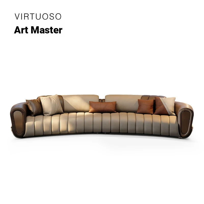 Artisan Curved Genuine Leather Sofa - Italian Minimalist Design for Spacious Villas and Luxury Living Rooms, Upholstered in Premium Full Grain Cowhide