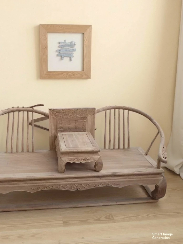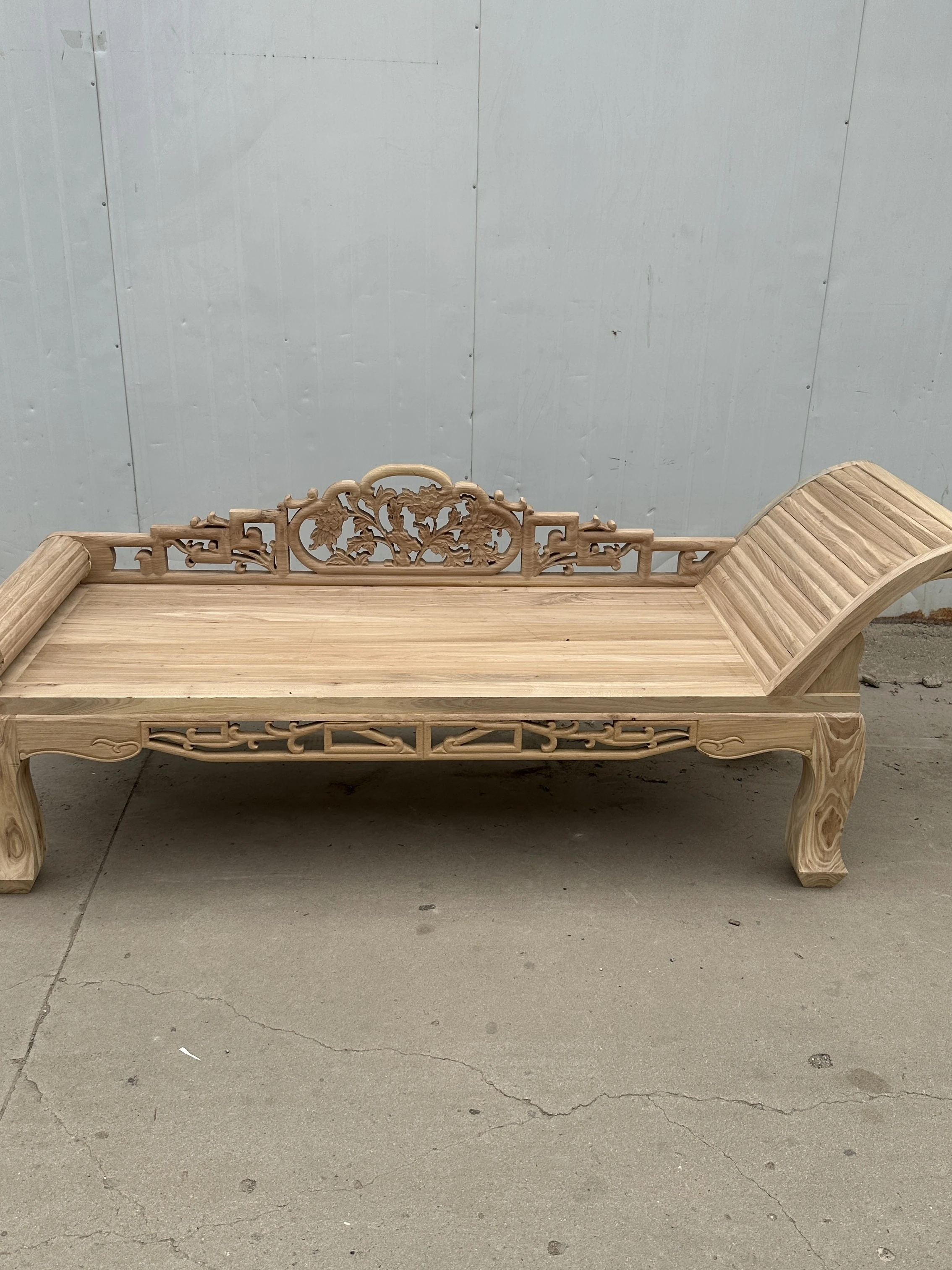 New Chinese Style Solid Old Elm Wood Chaise Lounge - Elegant and Comfortable Daybed for Relaxation, Perfect for Living Room and Bedroom Décor