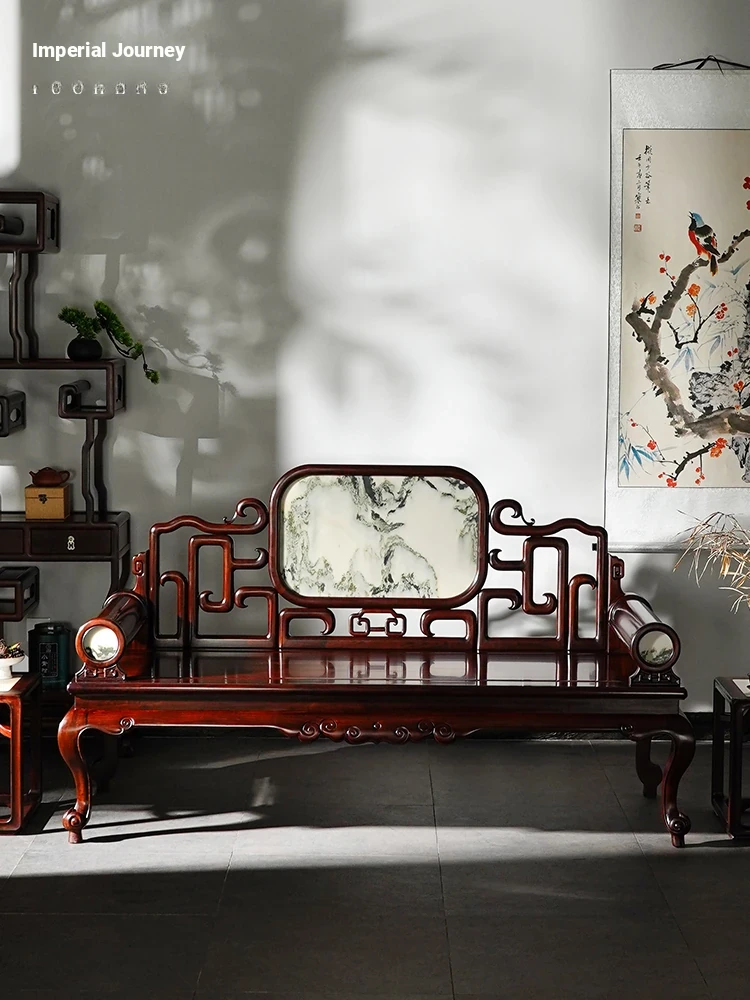 Elegant Chinese-Style Blackwood Chaise Lounge - Luxurious Daybed for Master Bedroom, Perfect Single Sofa for Small Spaces, Solid Wood Construction