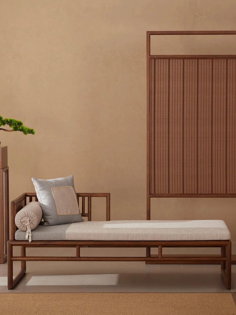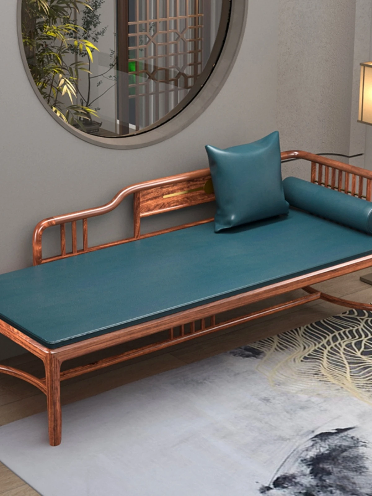 Elegant Wu Jin Wood New Chinese Style Solid Wood Chaise Lounge - Exquisite Beauty Couch for Bedroom, Perfect for Relaxation and Comfort