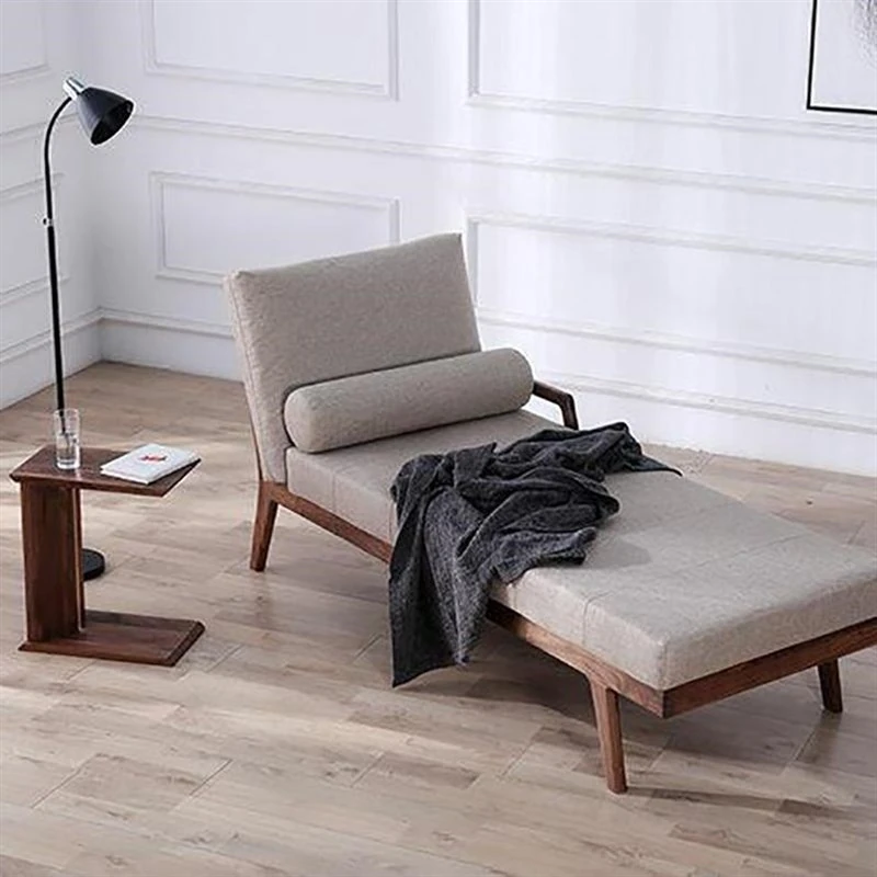 North American Black Walnut & Ash Wood Sofa Bed - New Chinese Style Recliner Chair for Office, Hotel, and Airbnb - Elegant Chaise Lounge for Living Room and Home