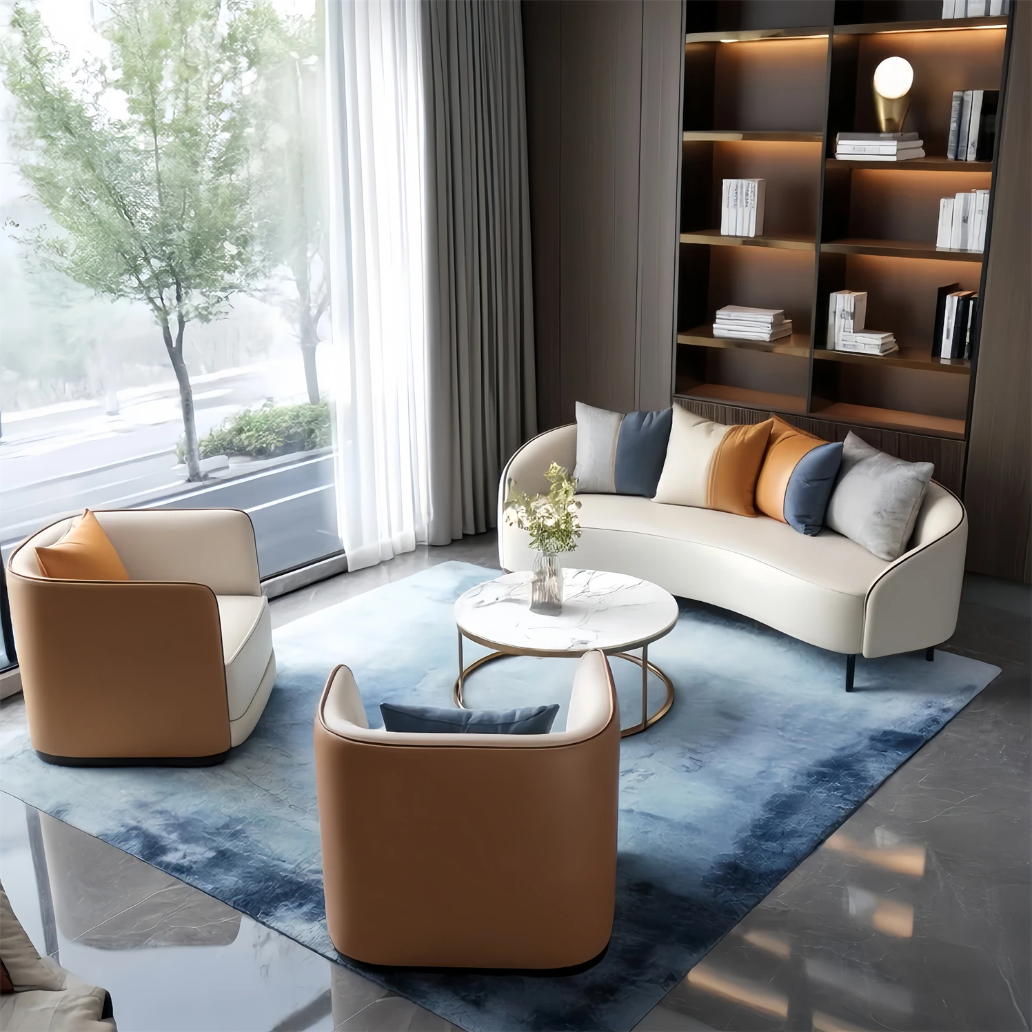 Curved Reception Sofa for Sales Office Lobby - Stylish and Comfortable Seating for Hotels, Beauty Salons, and Lounges - Perfect for Client Meetings and Welcoming Guests