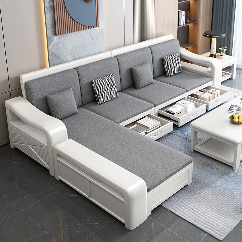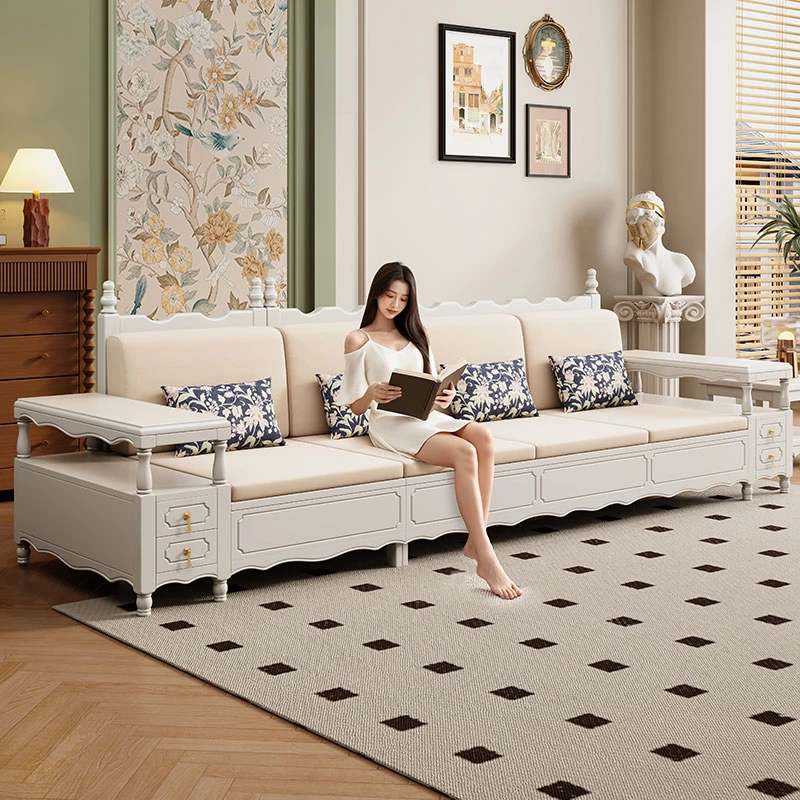 American Solid Wood Storage Sofa Set - Stylish White Compact Design for Small Spaces, Versatile for Winter and Summer, Made of Elegant Purple Sandalwood, Perfect for Cozy Living Rooms.