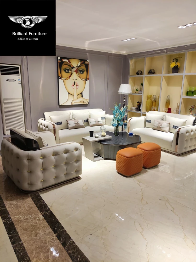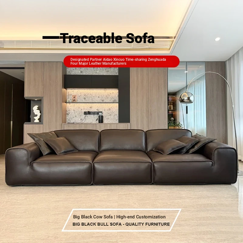 Italian Luxury Genuine Leather Sofa Set with Pull Tab Design for Villas - High-End Bentley Armani Style for Spacious Living Rooms