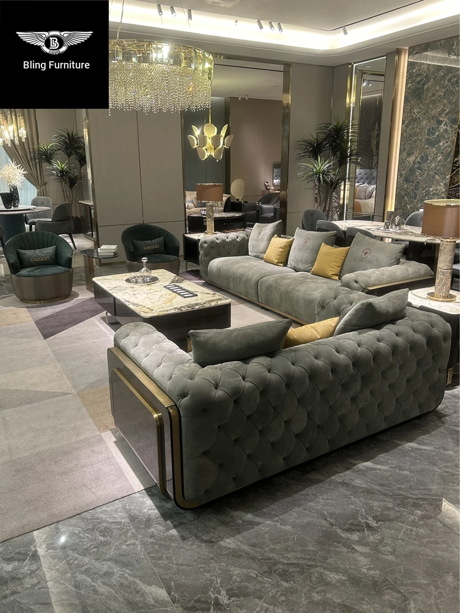 Italian Luxury Genuine Leather Suede Sofa Set - Modern Bentley Style for Spacious Living Rooms and Villas, Perfect for High-End Interiors