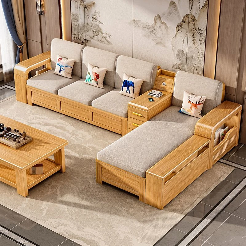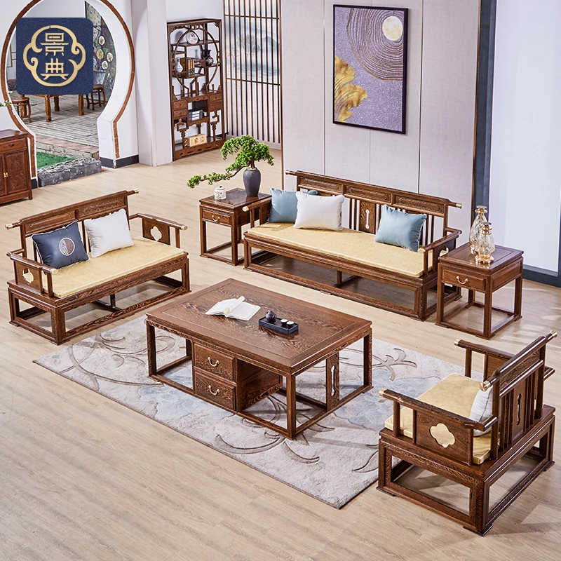 Modern Chinese Solid Wood Sofa Set - Elegant Song Style Aesthetic Furniture for Living Room, Perfect for High-End and Compact Spaces, Complete Luxurious Design