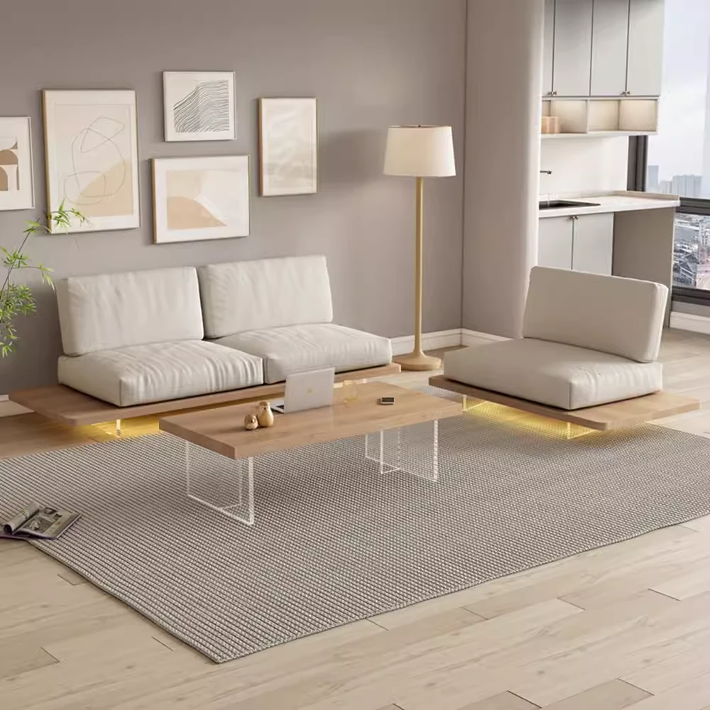 Wabi-Sabi Style Solid Wood Removable Floating Sofa - Minimalist 3-Seater for Small Spaces, Perfect for Rustic Homes and Cozy Living Rooms