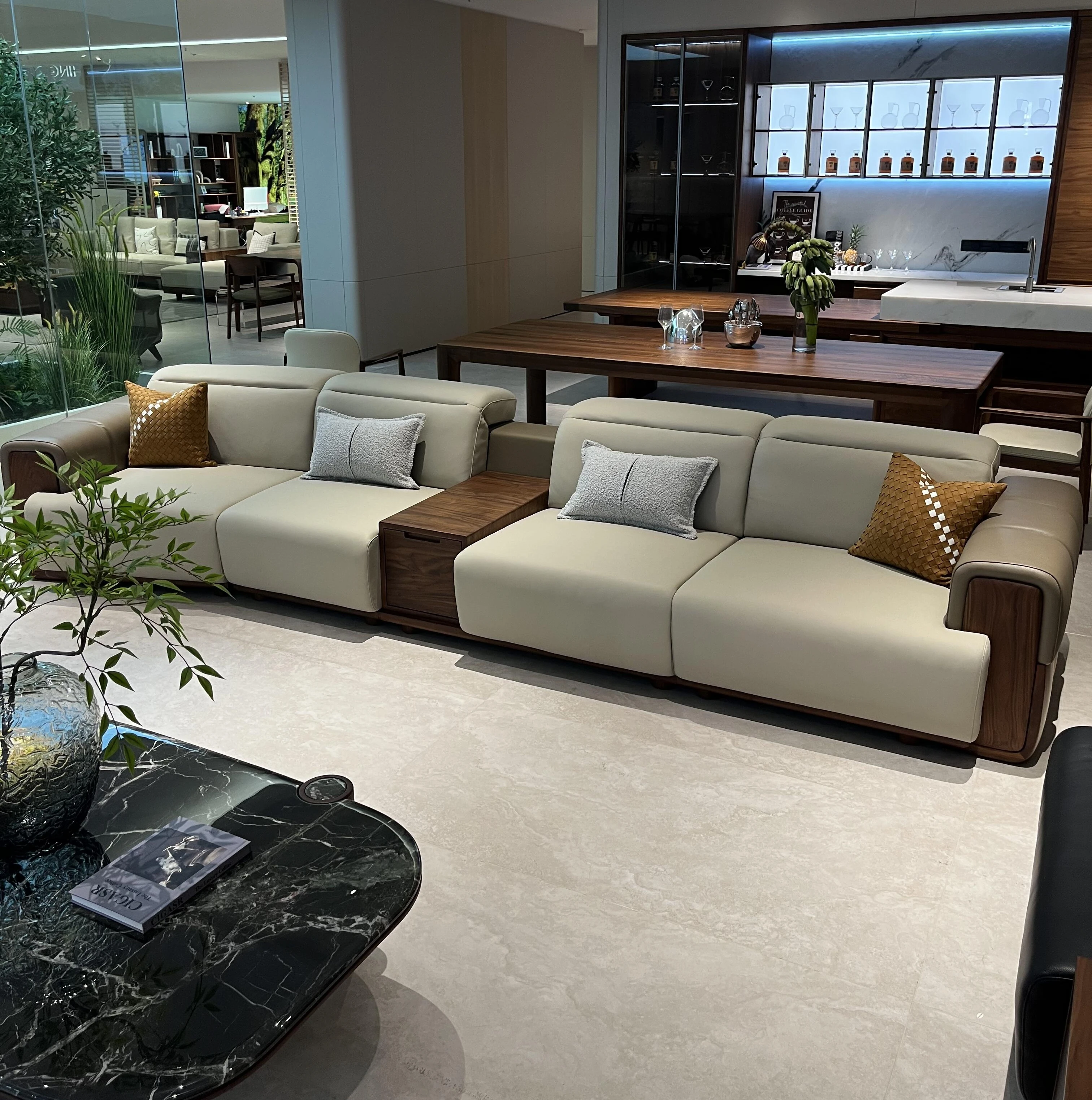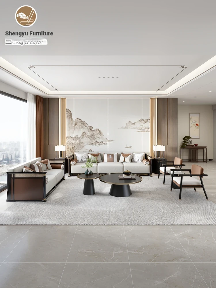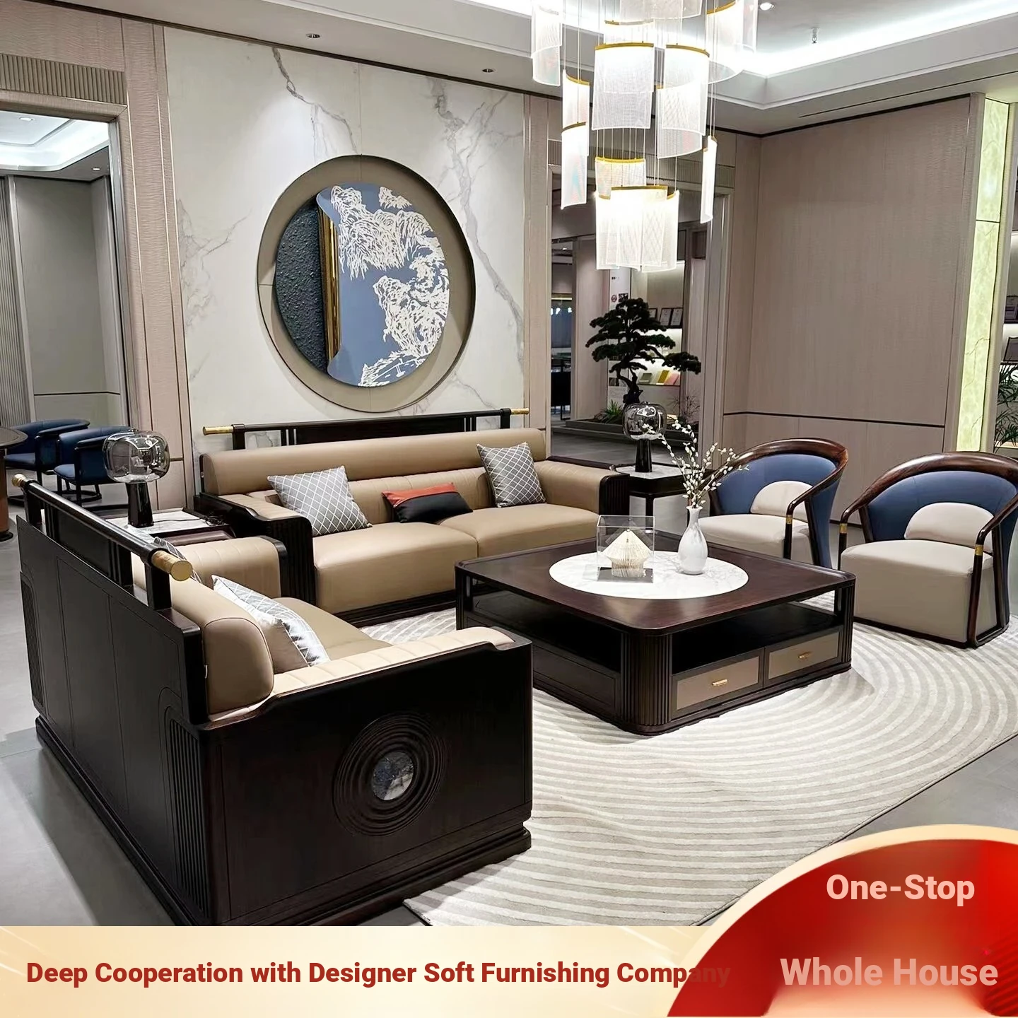 Modern Chinese-Style Solid Wood Sofa Set - Contemporary Luxury Minimalist Leather Furniture for Living Room - 2024 New Arrival for Stylish Interiors