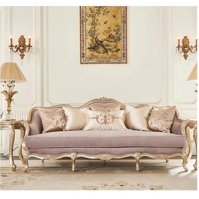 French Style Regal Princess Carved Three-Seat Sofa - American Cream Aesthetic, European Classical Solid Wood Furniture for Elegant Living Rooms