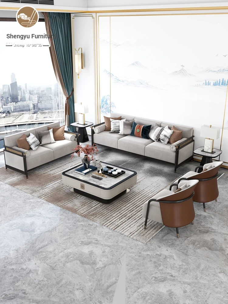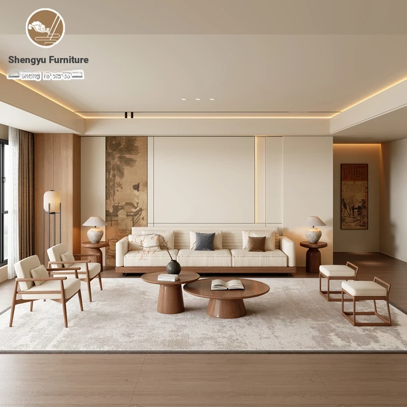 Modern Chinese Style Sofa Set - Elegant and Minimalist Design for Living Rooms, Perfect for Sample Homes and Various Apartment Sizes, Crafted from Solid Wood Furniture