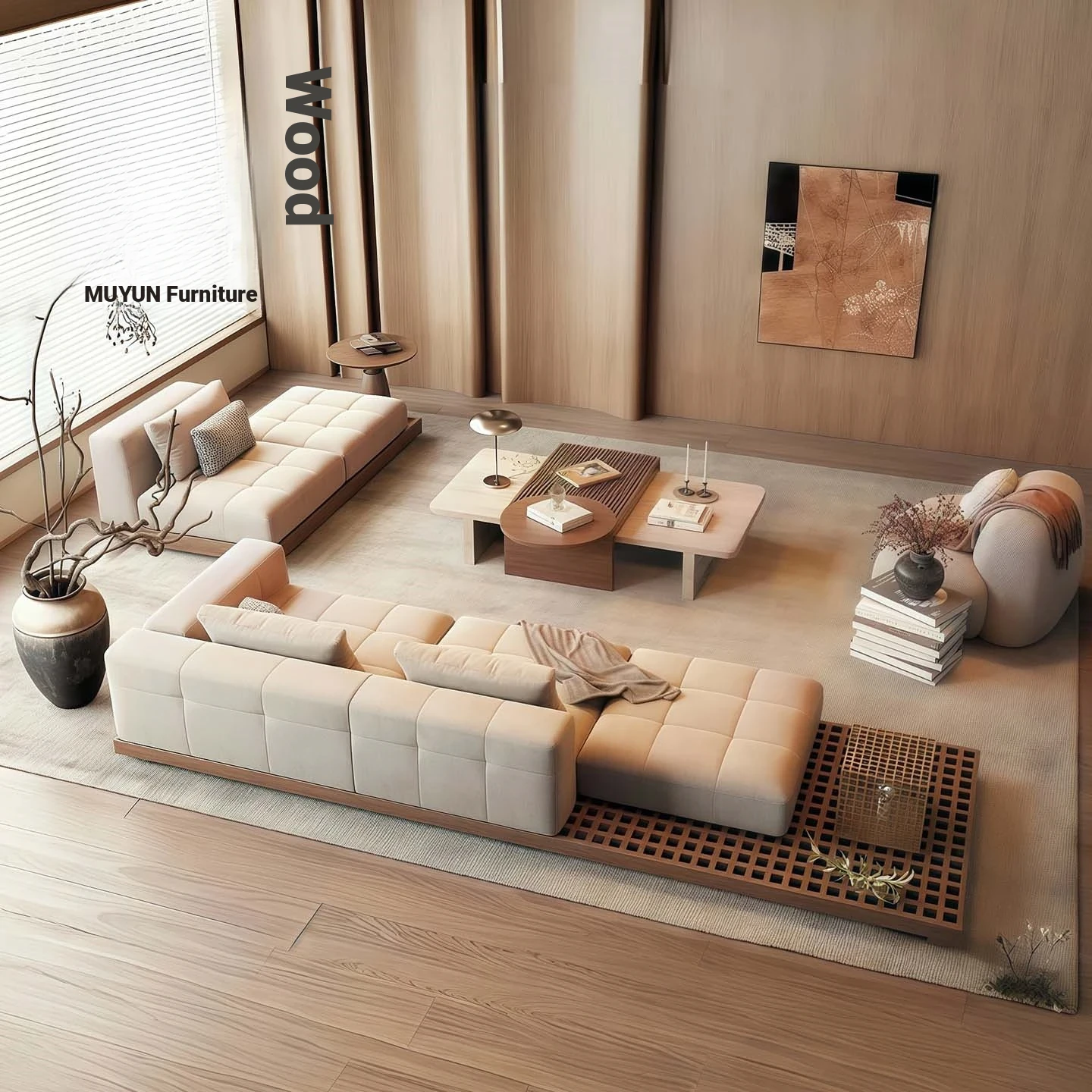 Modern Minimalist Chinese Style Living Room Sofa Set - Elegant Ash Wood Zen Design for Tea Rooms and Show Homes