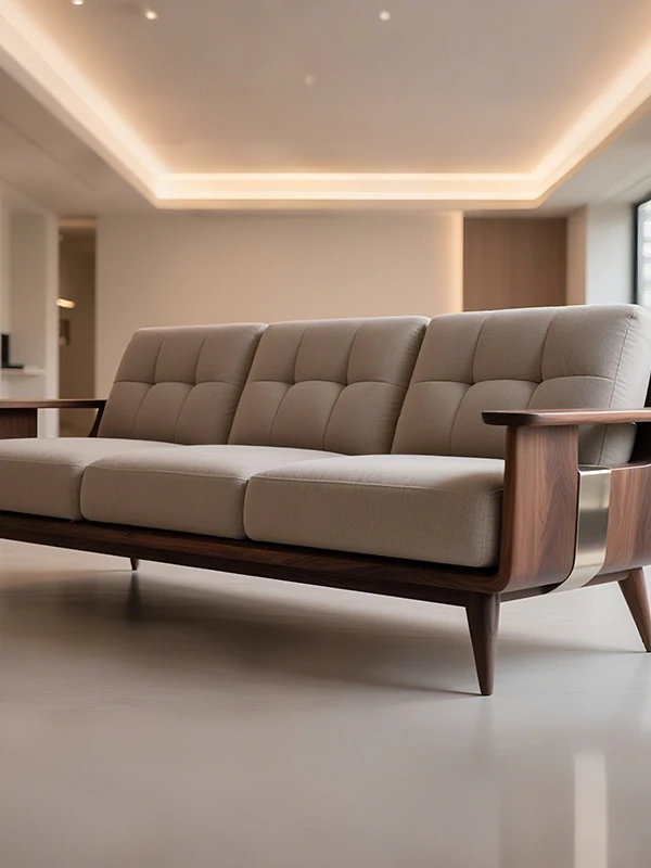 Exclusive Design Black Walnut Straight Sofa for Living Room – Modern Minimalist Solid Wood Furniture for Spacious Homes, Villas, and Clubs.