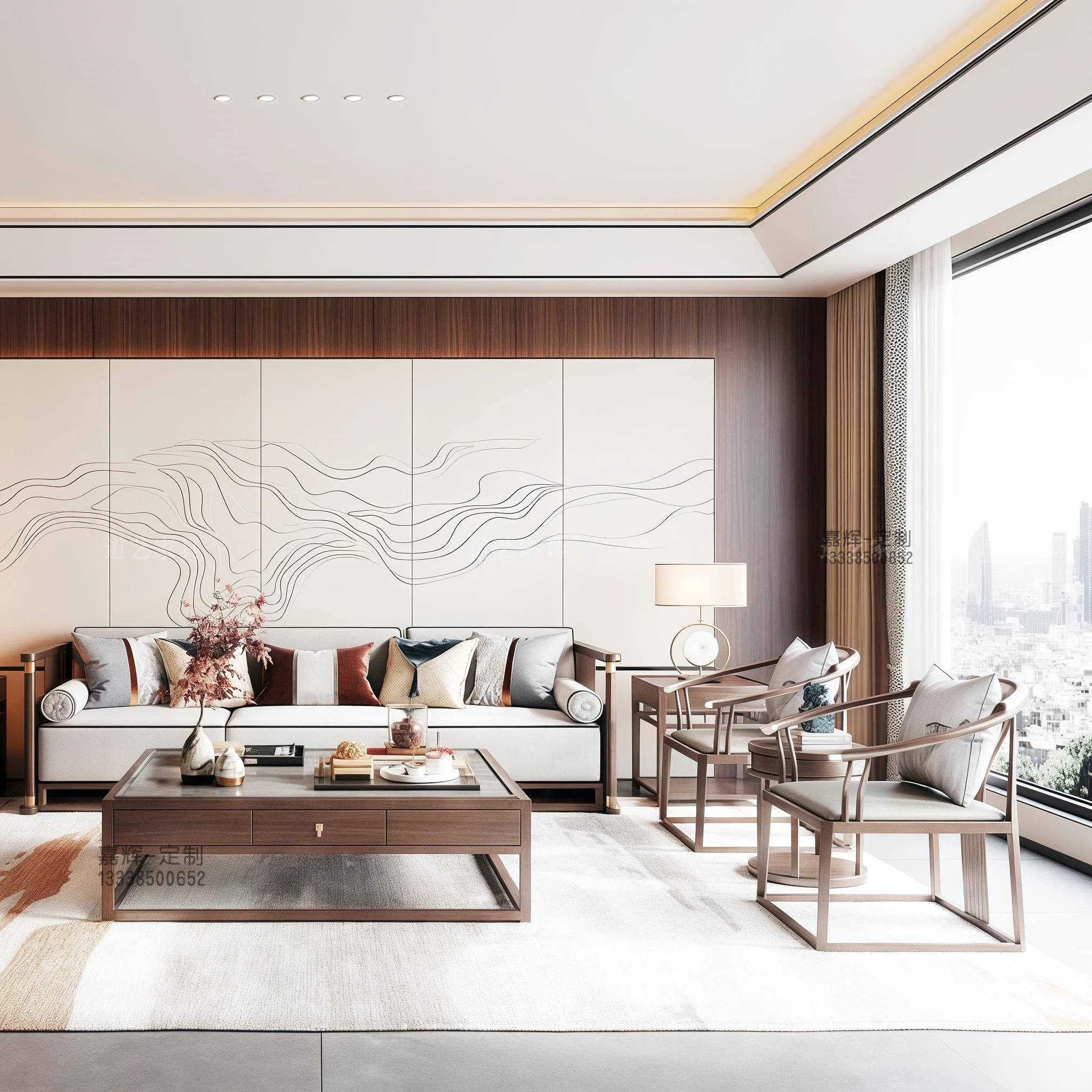 Elegant Chinese-Style Solid Wood Sofa Set - Zen-Inspired Design for Living Rooms of All Sizes, Perfect for Show Homes and Modern Decor.
