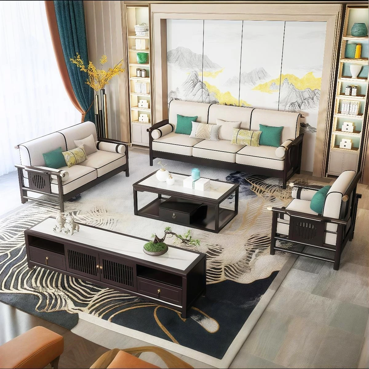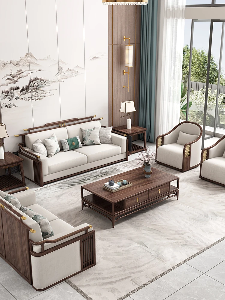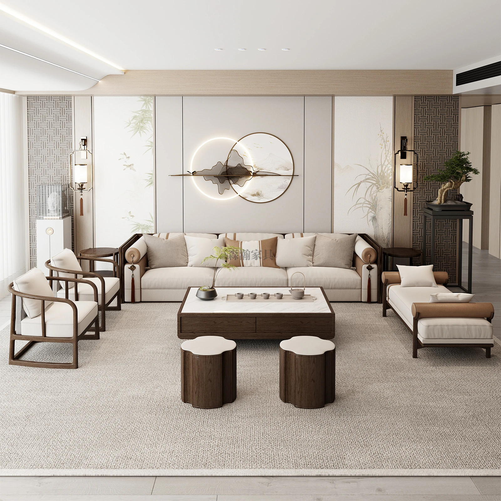 Modern Minimalist Solid Wood Sofa Set - New Chinese Style Zen-Inspired Furniture for Stylish Villas and Living Rooms