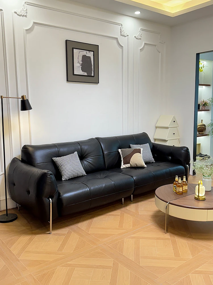 Feiguo National Style Genuine Leather Sofa - Minimalist Italian Design for Small Spaces, Retro Aesthetic, Modern Black Couch Perfect for Your Living Room