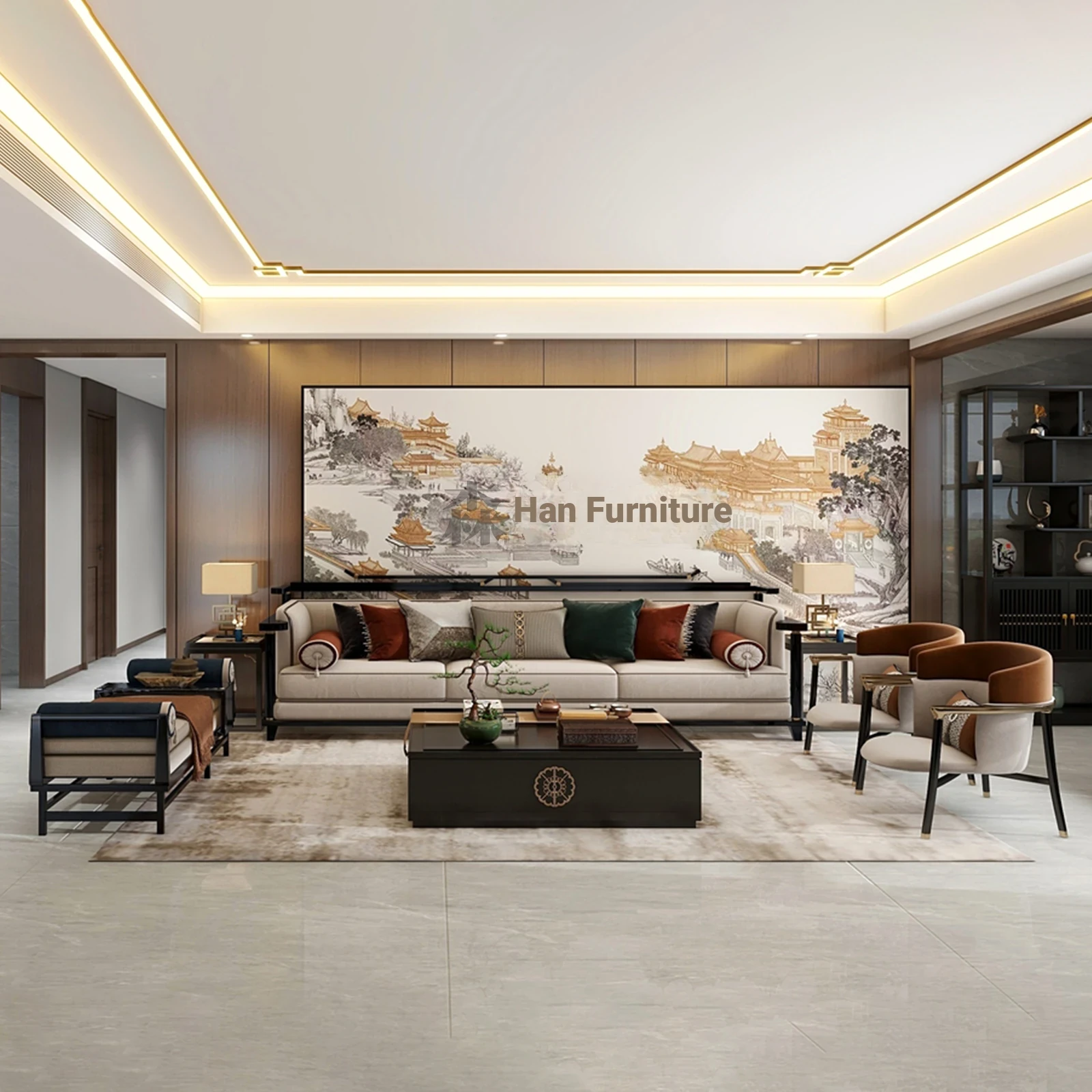 Modern Chinese-Style Light Luxury Sofa Set for Living Room - Elegant Solid Wood Sofa Combination for Sample Room in Flat Villa Hall