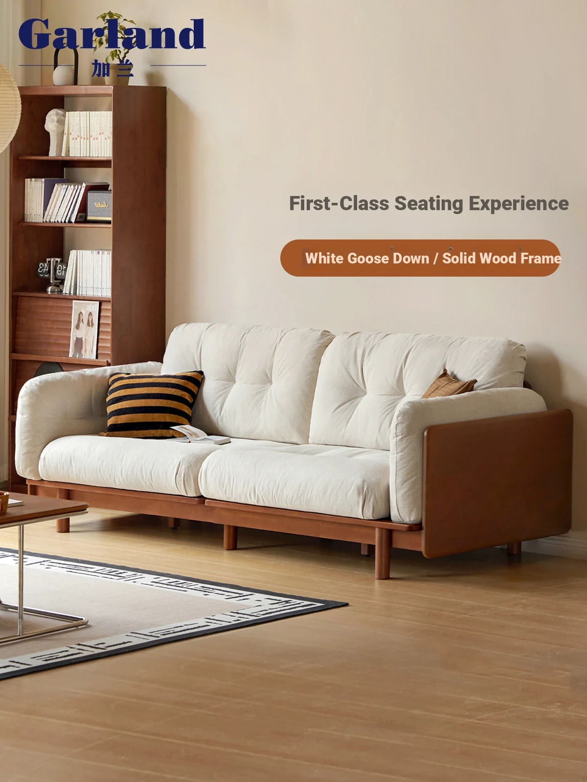 Creamy Modern Minimalist Sofa for Small Spaces - French Vintage Style with Rustic Wood and Japanese Casual Fabric, Perfect for Living Rooms and Villas