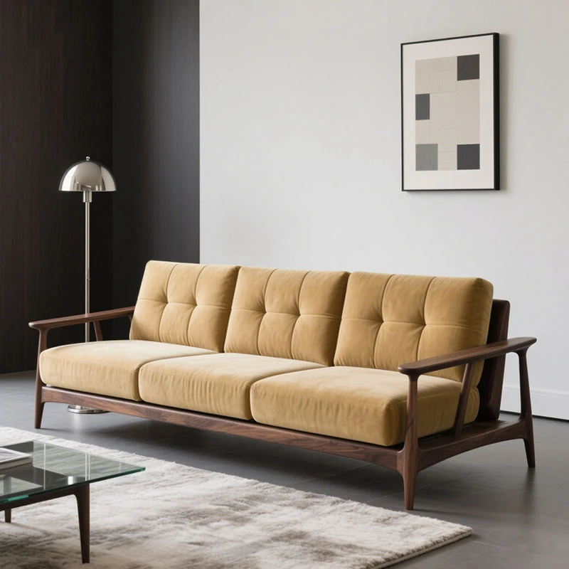 Song Style Aesthetic New Chinese Solid Wood Sofa - Single, Double, and Triple Seat Options for Modern Villas. Embrace Minimalist Chic with Vintage Charm and Exceptional Quality.