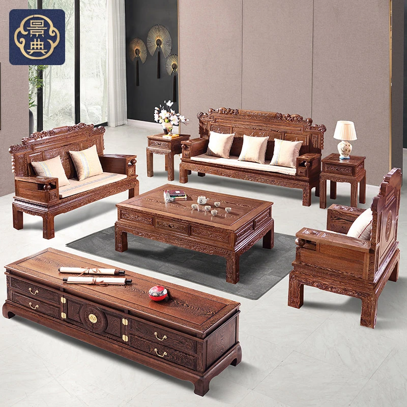 Elegant Modern Chinese Solid Blackwood Sofa Set - Premium Full Solid Wood Living Room Furniture for Villas and Large Homes, Perfect for Luxurious and Contemporary Spaces