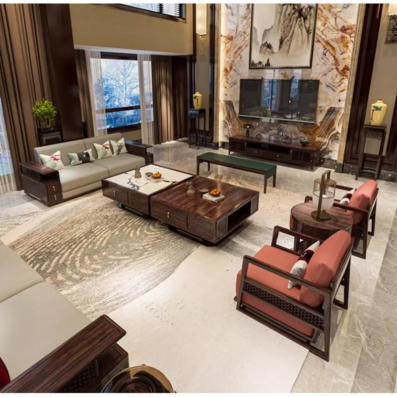 Luxury New Chinese Style Solid Wood Living Room Sofa Set - Modern Light Luxury North American Black Walnut Villa Genuine Leather Sofa