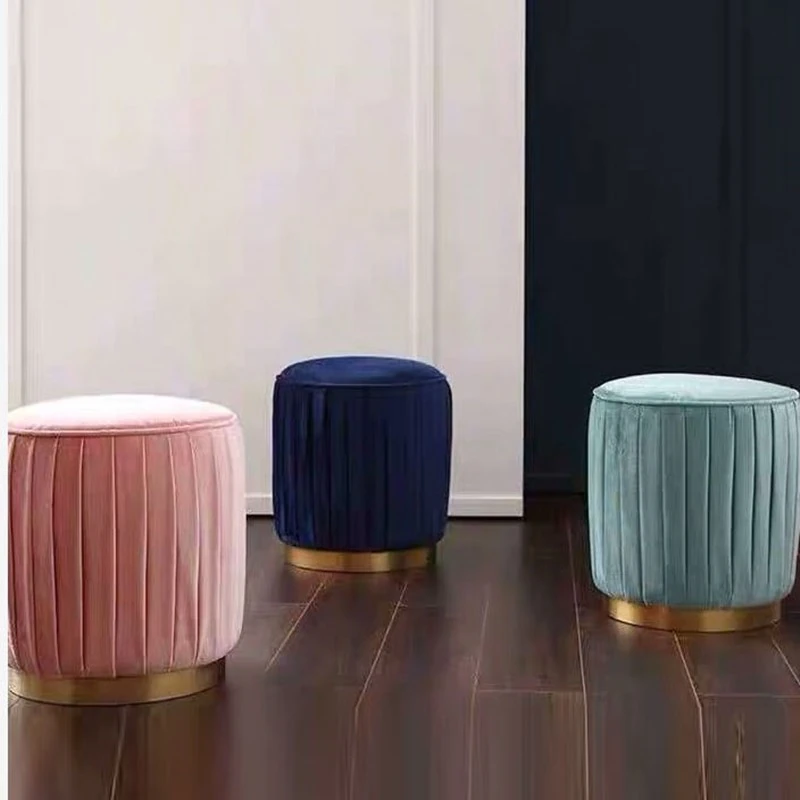 軽やかでラグジュアリーな北欧スタイルの一人用ソファスツール、リビングや服装店に最適な丸型の低いスツール。おしゃれで実用的なデザインで、どんな空間にもぴったりフィット!