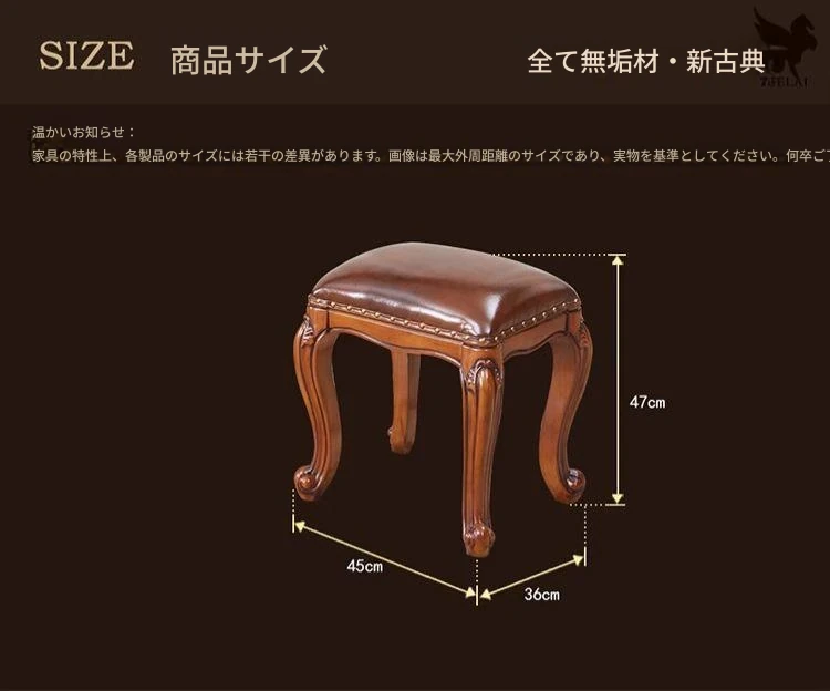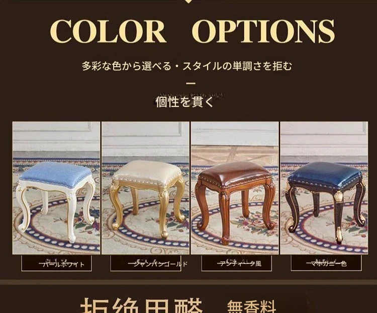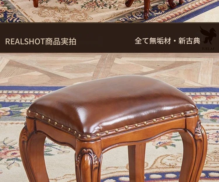 ヨーロッパスタイルの古筝用低いスツール|無垢材製|ソファ、ドレッサー、コーヒーテーブルに最適|アメリカンスタイルの化粧台やリビングにぴったりの靴替え用スクエアスツール【