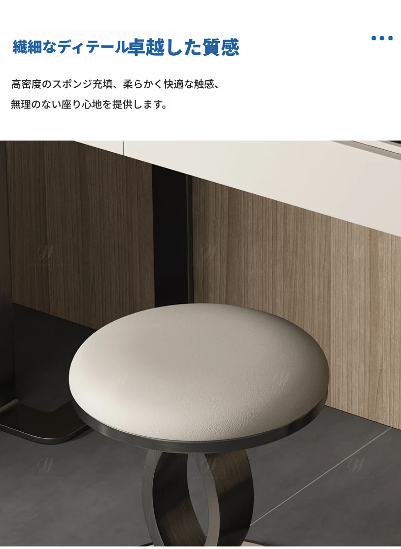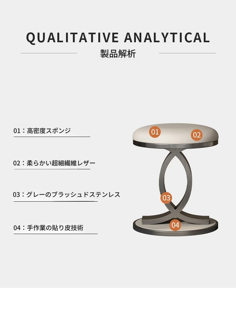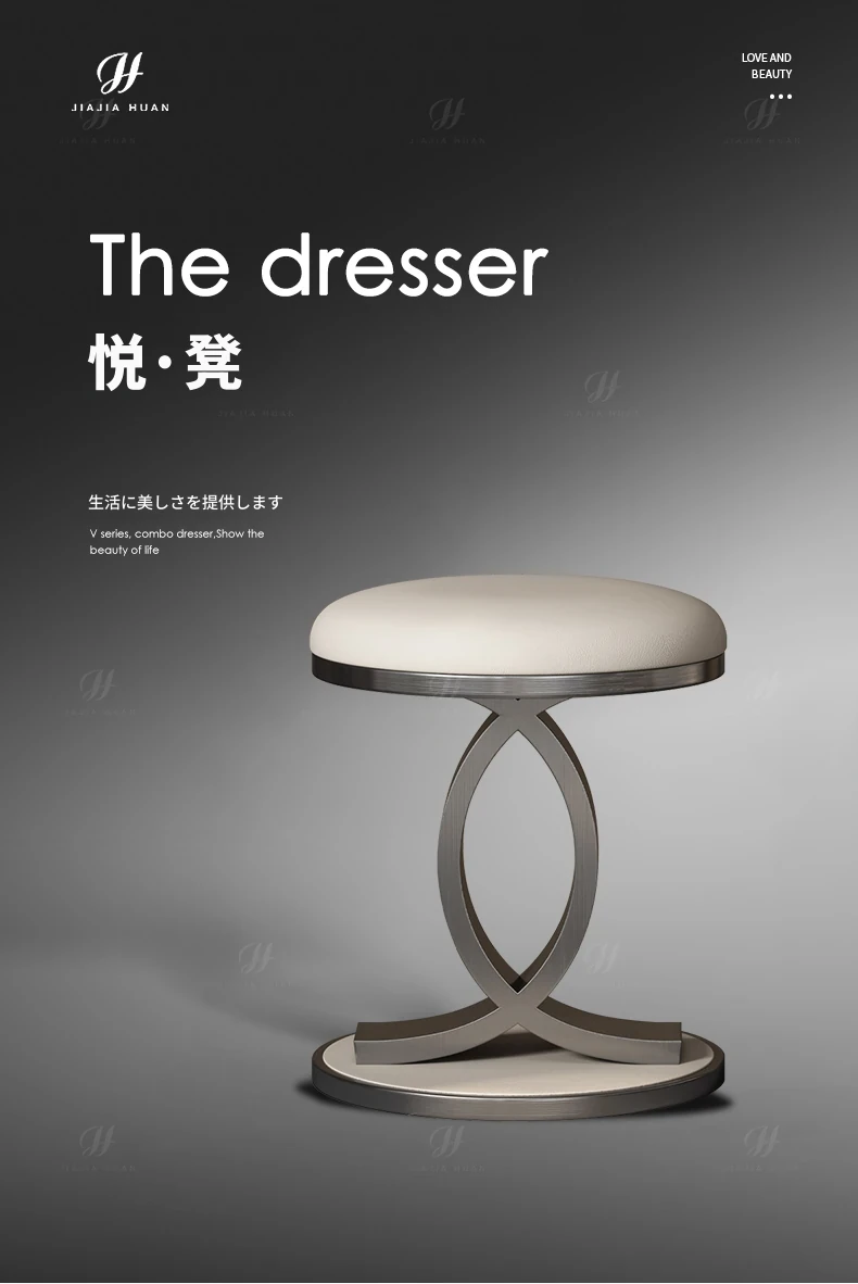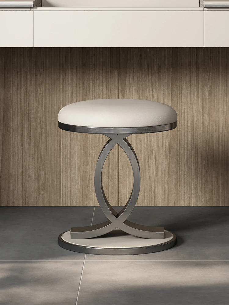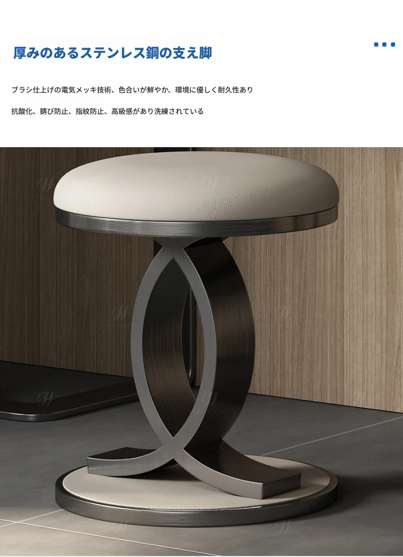 2025年新作!軽やかなラグジュアリーのドレッシングスツール - ステンレス製の化粧台用ラウンドスツール。モダンな女性の寝室にぴったりなデザインで、快適さとスタイルを兼ね備えています。おしゃれな空間を演出しましょう!