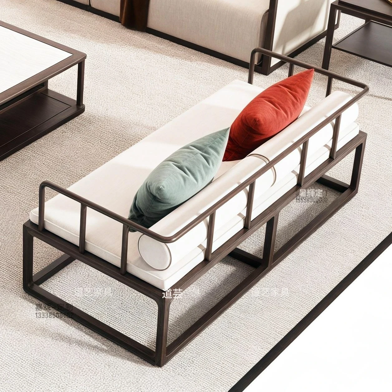 新中式の無垢材ソファセット|宋の美学を取り入れた禅の侘び寂びスタイル|シンプルでエレガントな布張りソファ|ホテルや民宿に最適な家具✨