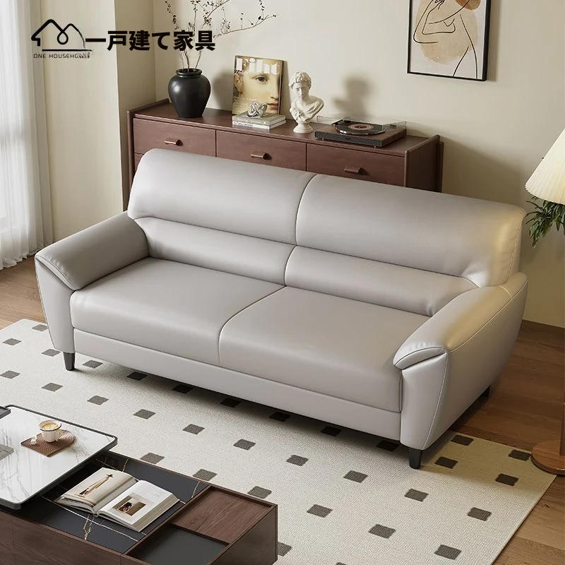 新作イタリアンミニマリスト本革ソファ|モダンでシンプルなリビングに最適!軽やかなラグジュアリー、小型アパートにもぴったりのストレートデザインレザーソファ。