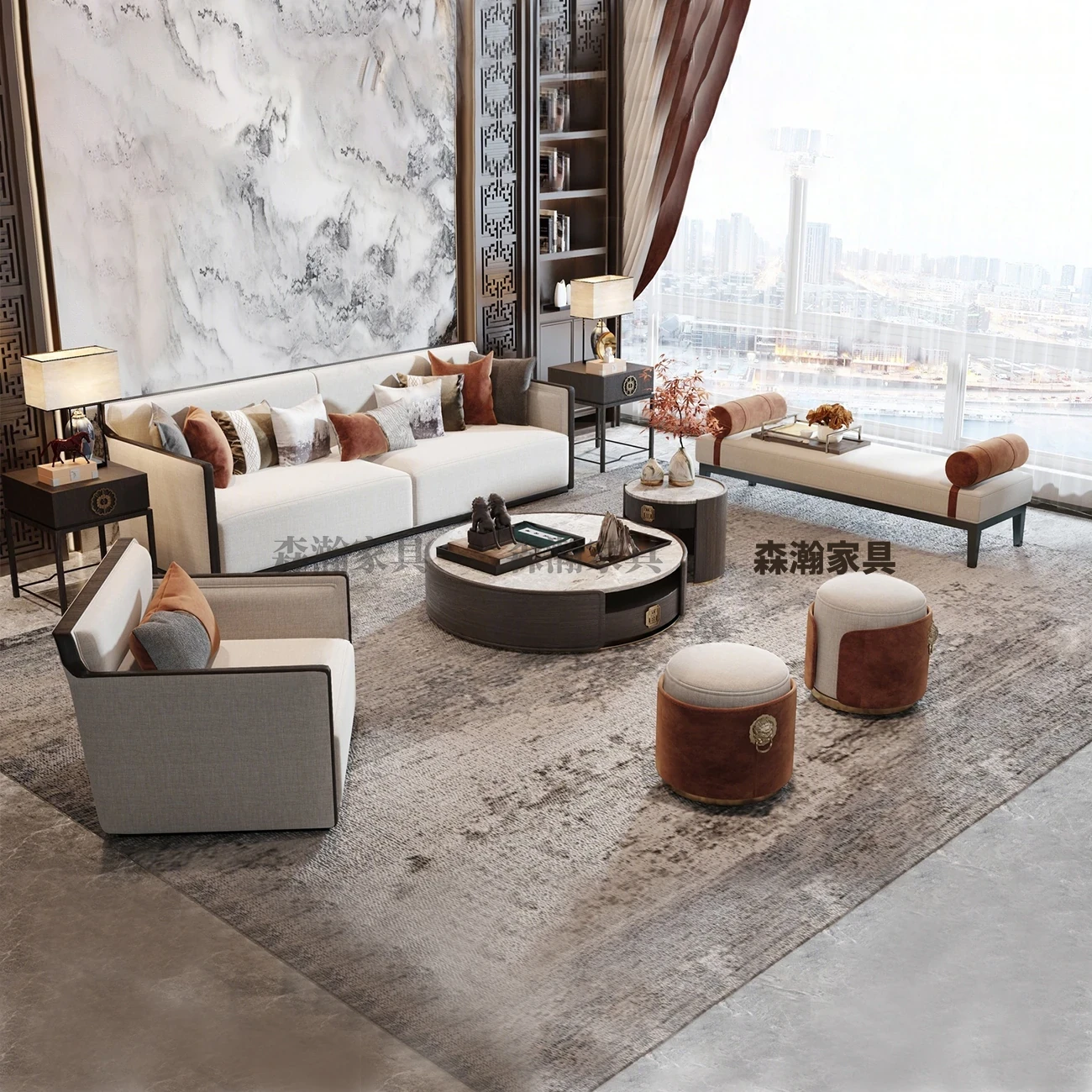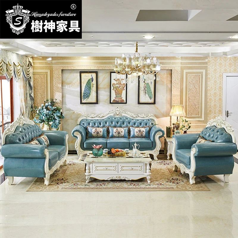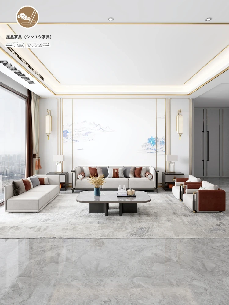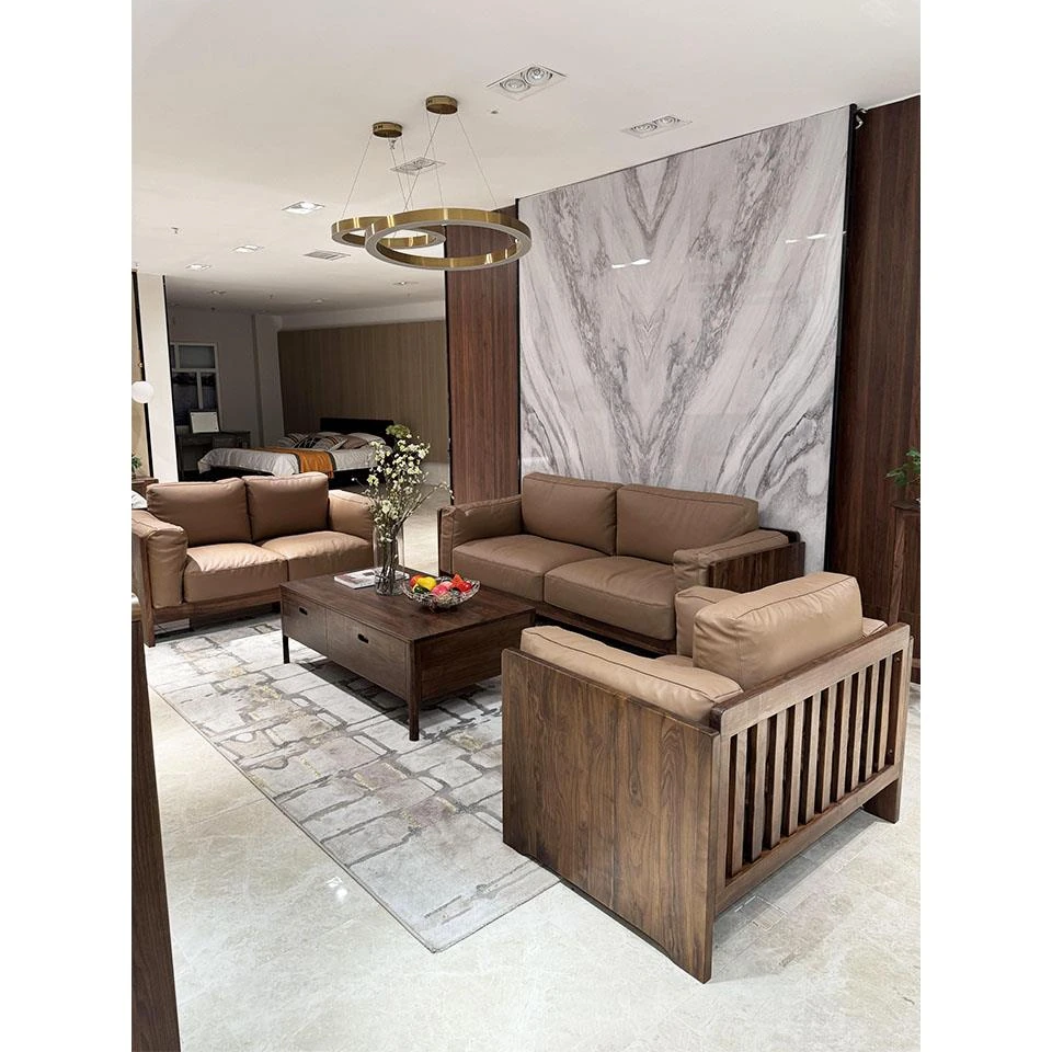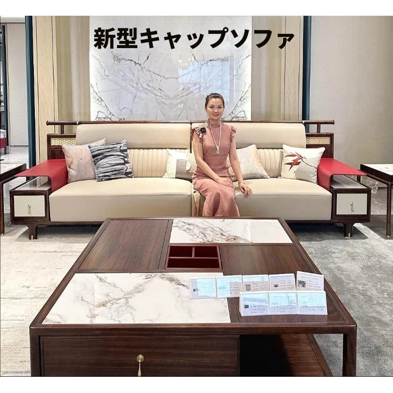 新中式本革ソファーセット|ラグジュアリーでモダンなシンプルデザイン|中国風の別荘や広々としたリビングに最適な木製家具