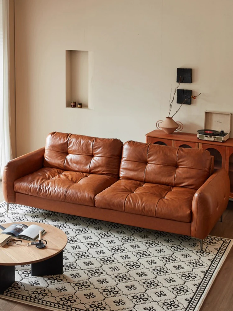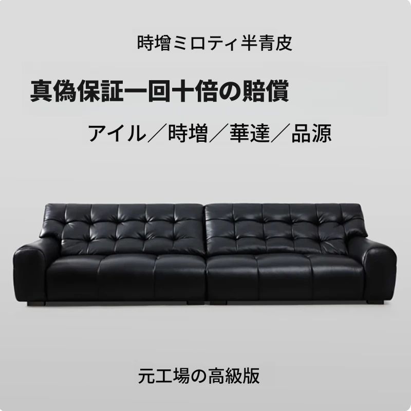 モダンミニマリスト本革ソファ|イタリアンスタイルの軽やかなラグジュアリー|小さなリビングに最適なトレンディな豆腐ブロック型コンビネーション家具