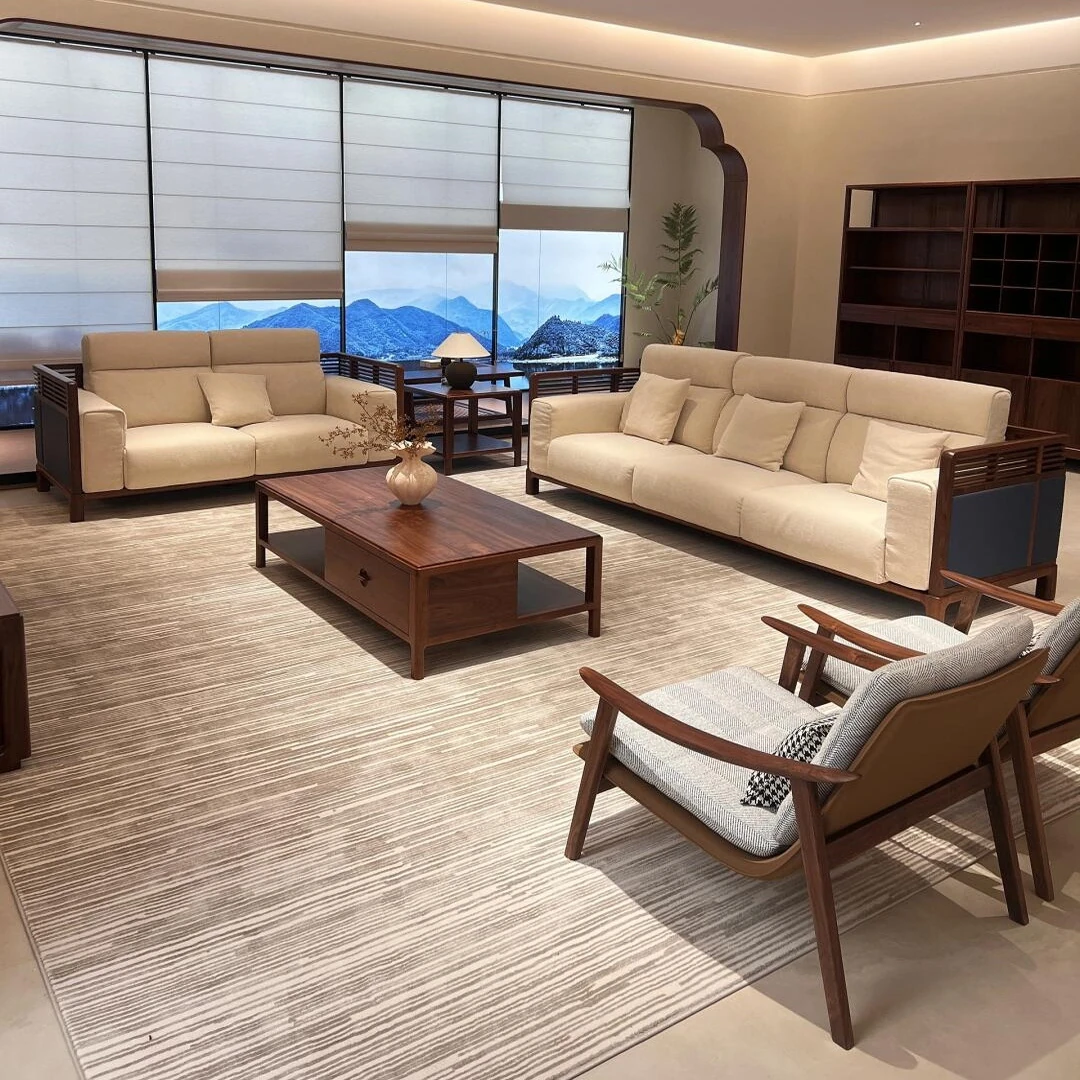 新中式天然木製ソファ|心安らぐ禅の空間を演出するリビング・ホテル向け|茶会やビジネスミーティングに最適なソファセット|洗練されたデザインでおもてなしを。