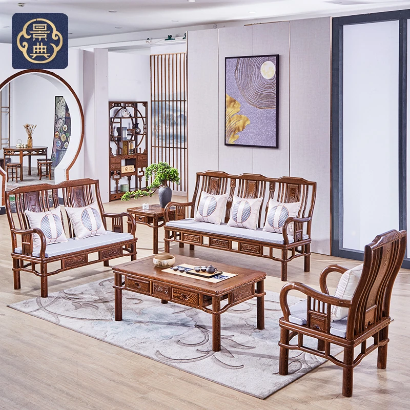 鶏翅木を使用した新中式紅木家具、全実木のアンティークスタイルソファセット!小型リビングにもぴったりのコンパクトデザインで、上質な空間を演出します。おしゃれで落ち着いた雰囲気を手に入れましょう!