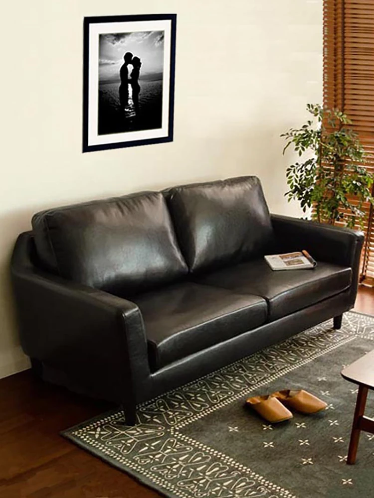 ヴィンテージ風レトロブラックシュガークラウドソファー 新作フレンチスタイル ロータイプ小型リビング用 本革3人掛けソファー 省スペースでおしゃれなインテリアに最適!