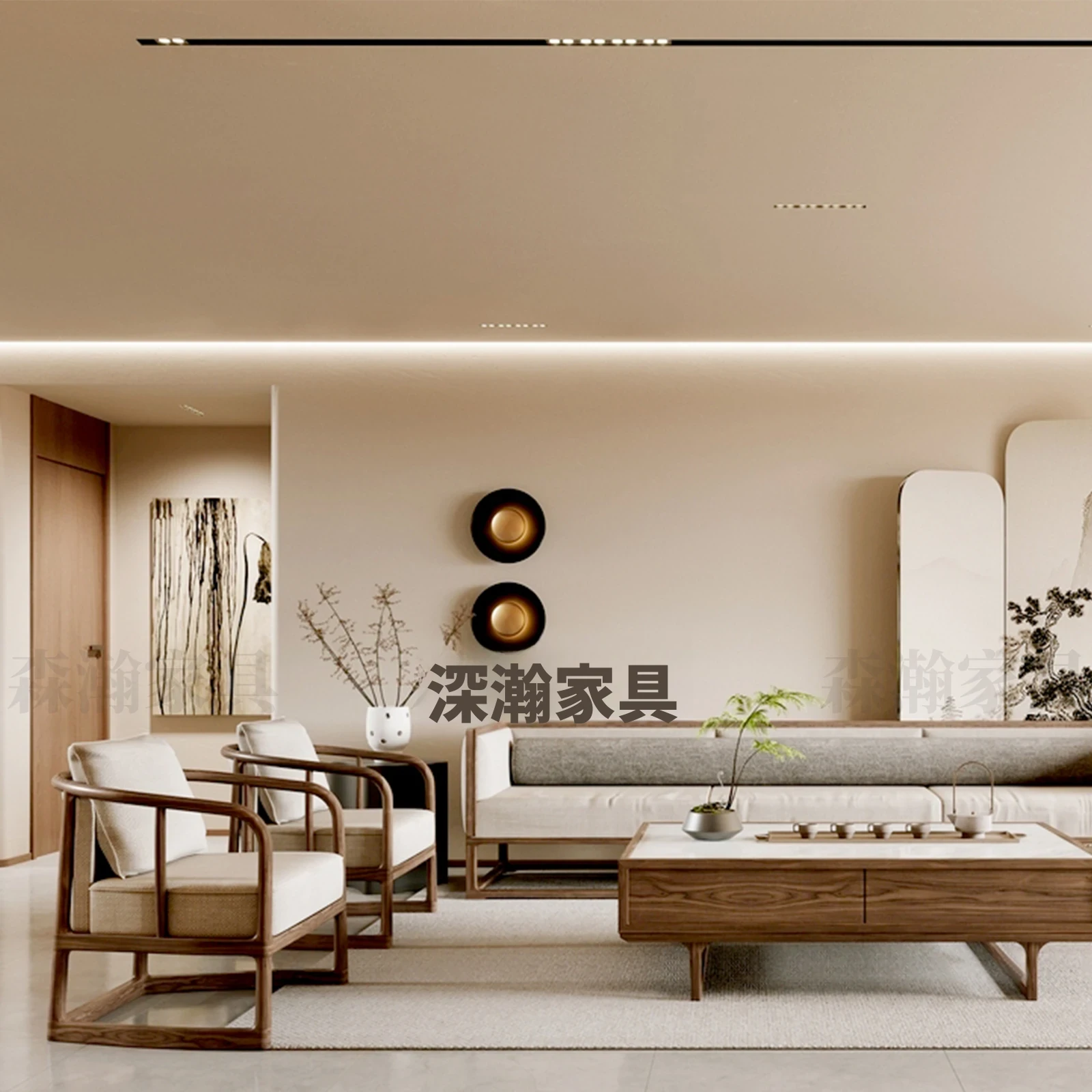 新中式スタイルソファセット - モダンでラグジュアリーなデザイン、シンプルで洗練された新作。リビングルームにぴったりなモデルルーム仕様のフルセット、大小さまざまな住宅にも最適な無垢材家具。