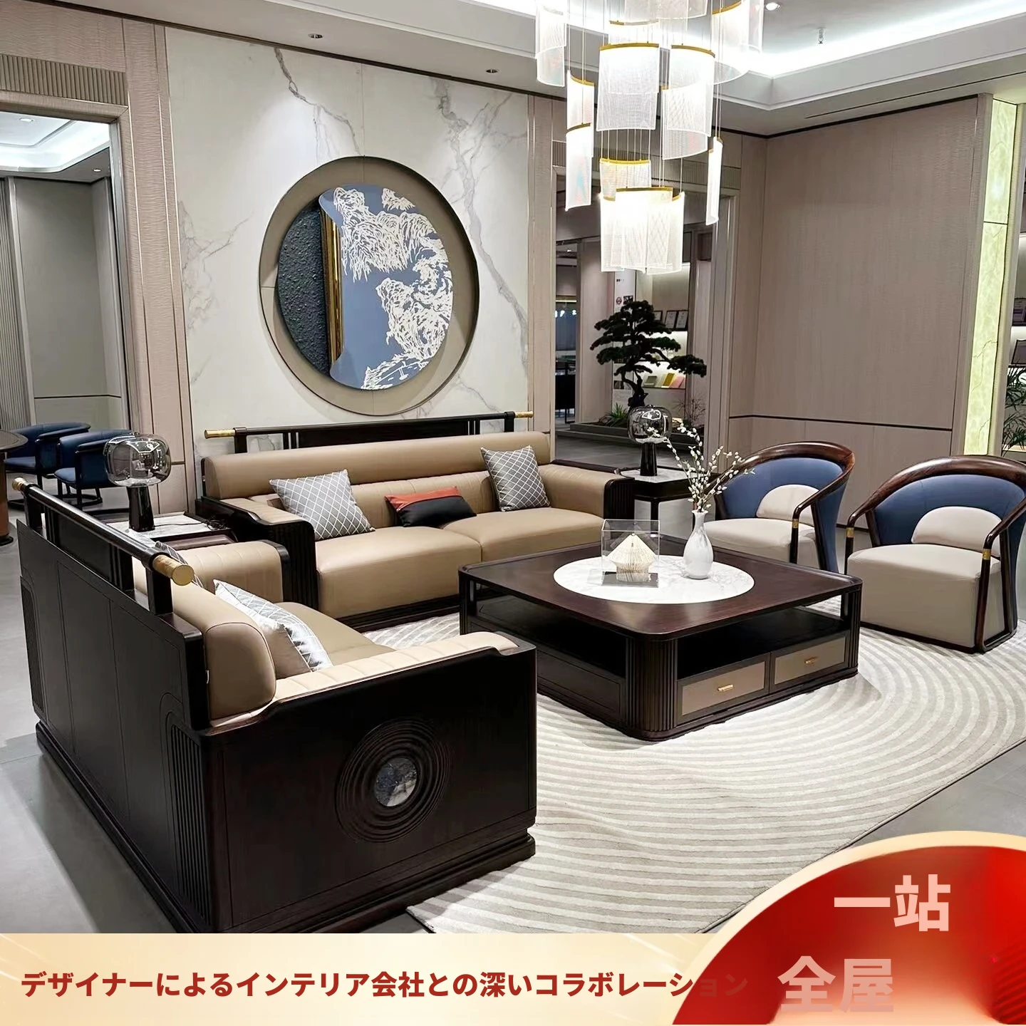 新中式デザインの本革ソファセット - モダンでラグジュアリーなリビングに最適!シンプルで洗練された2024年新作家具、あなたのインテリアを格上げします。