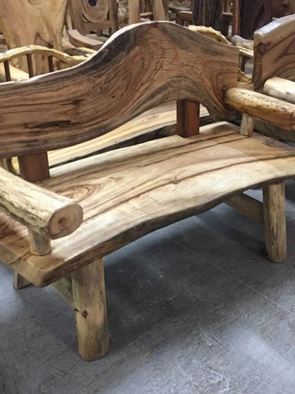 天然木の香り漂う、無垢材使用のユニークなデザイン!シンプルでスタイリッシュな香樟木製のリラックスロングベンチ、宿泊施設やリビングに最適な二人掛けソファ。心地よいひとときをお届けします!