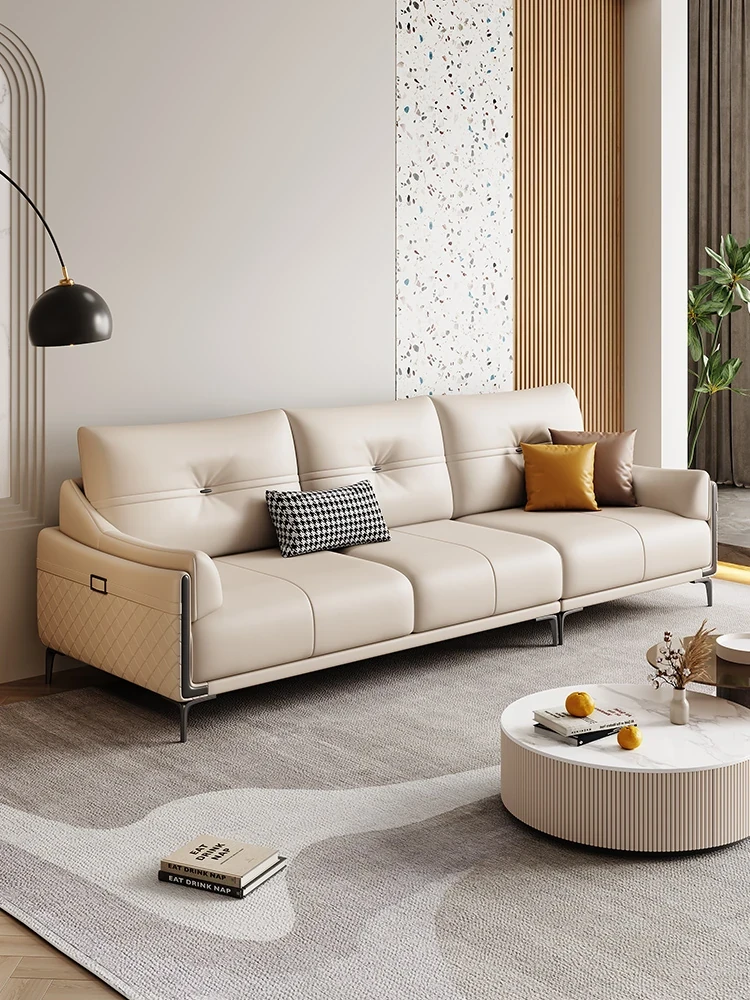 イタリアンミニマリズム本革ソファセット - モダンでシンプルな豆腐ブロック型、リラックスできるラグジュアリーなリビングに最適!直線的なデザインで、どんなインテリアにも調和します。