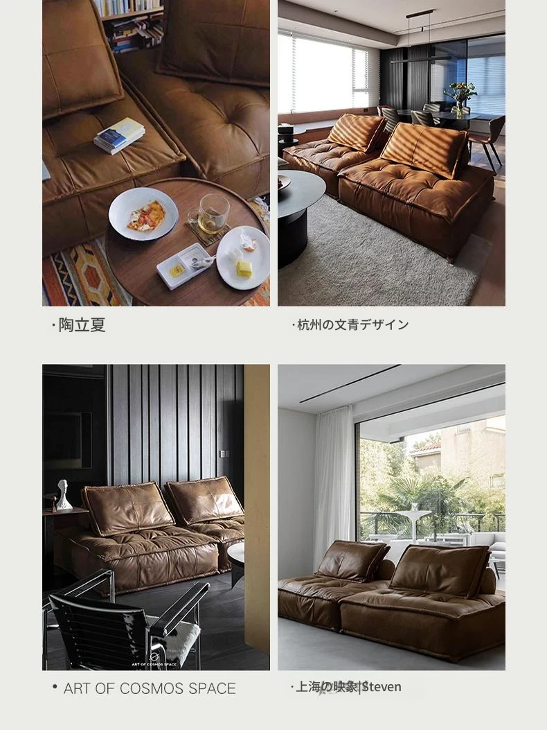 フェグー チョコレートソファ フランス風レトロブラウン 本革ソファ 現代的ミニマリズム ハイグレード牛革使用 ふんわりクッションソファで贅沢なくつろぎを実現!