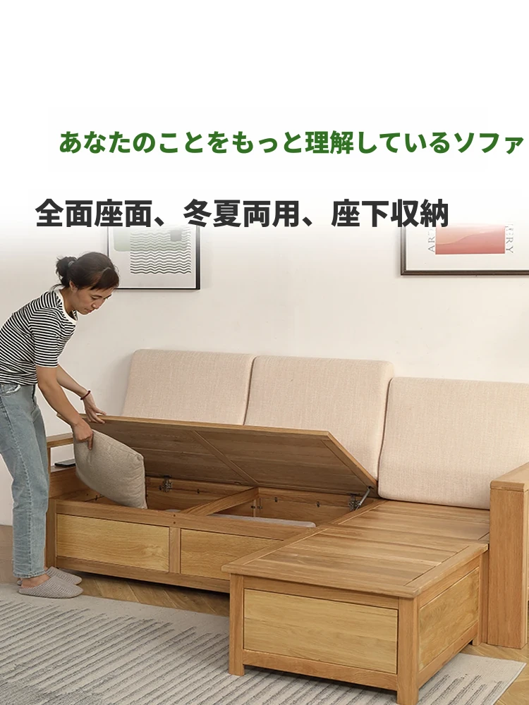 冬夏兼用の北欧・和風スタイルのホワイトオーク無垢材ソファ!小型リビングにぴったりな収納ボックス付きで、モダンでシンプルな高級感。限られたスペースでも快適に過ごせる理想の一品です。