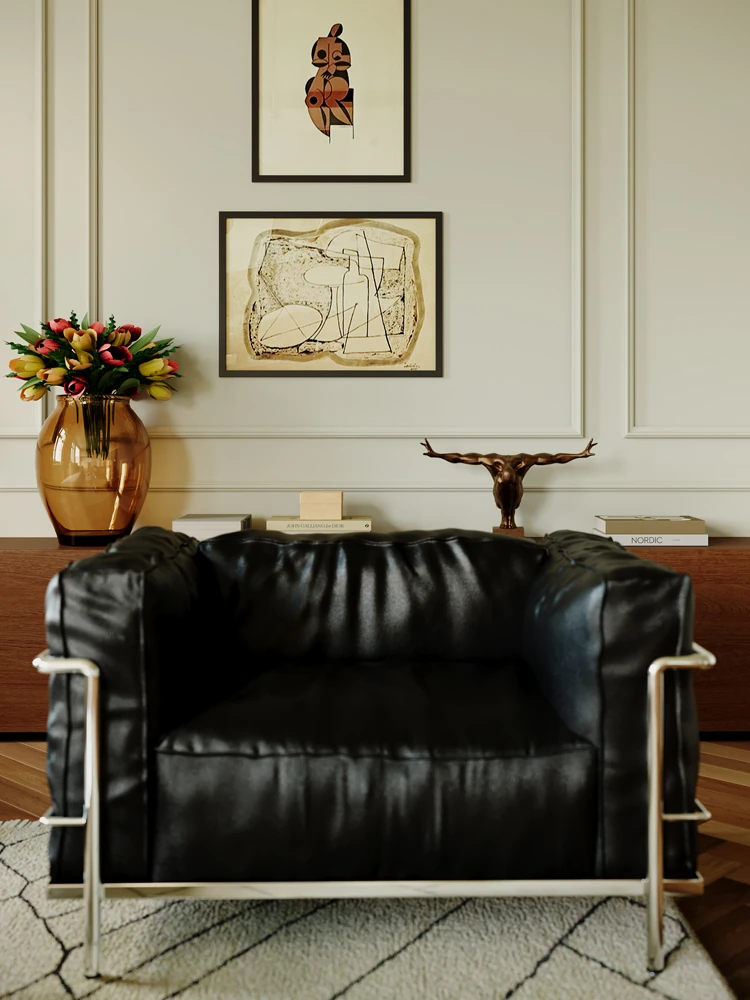 LC3一人掛けソファー|イタリアンミニマリズムデザイン|ル・コルビジェスタイル|リビングやバルコニーに最適|ダウン入り本革のリラックスチェア